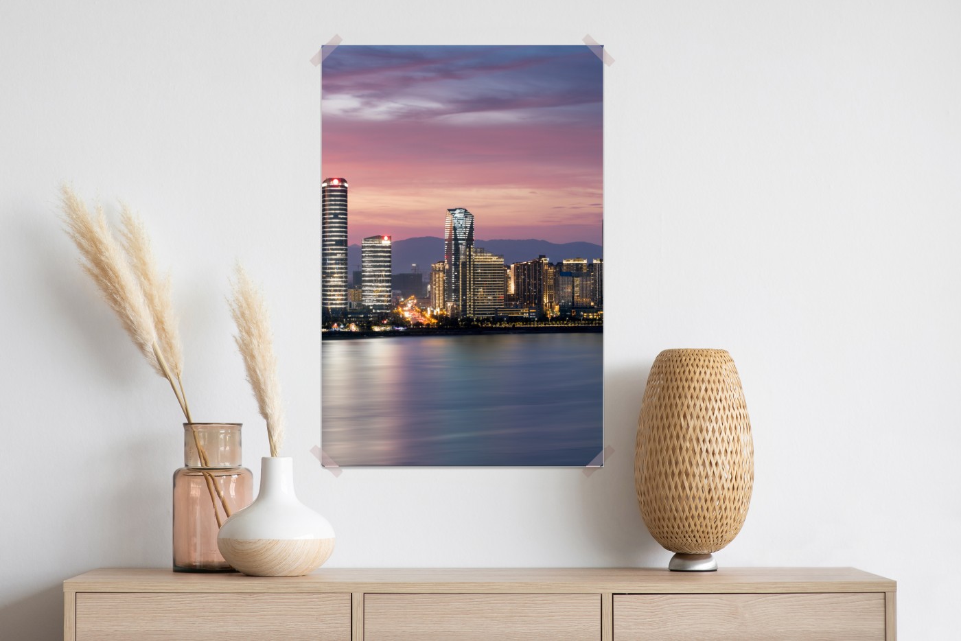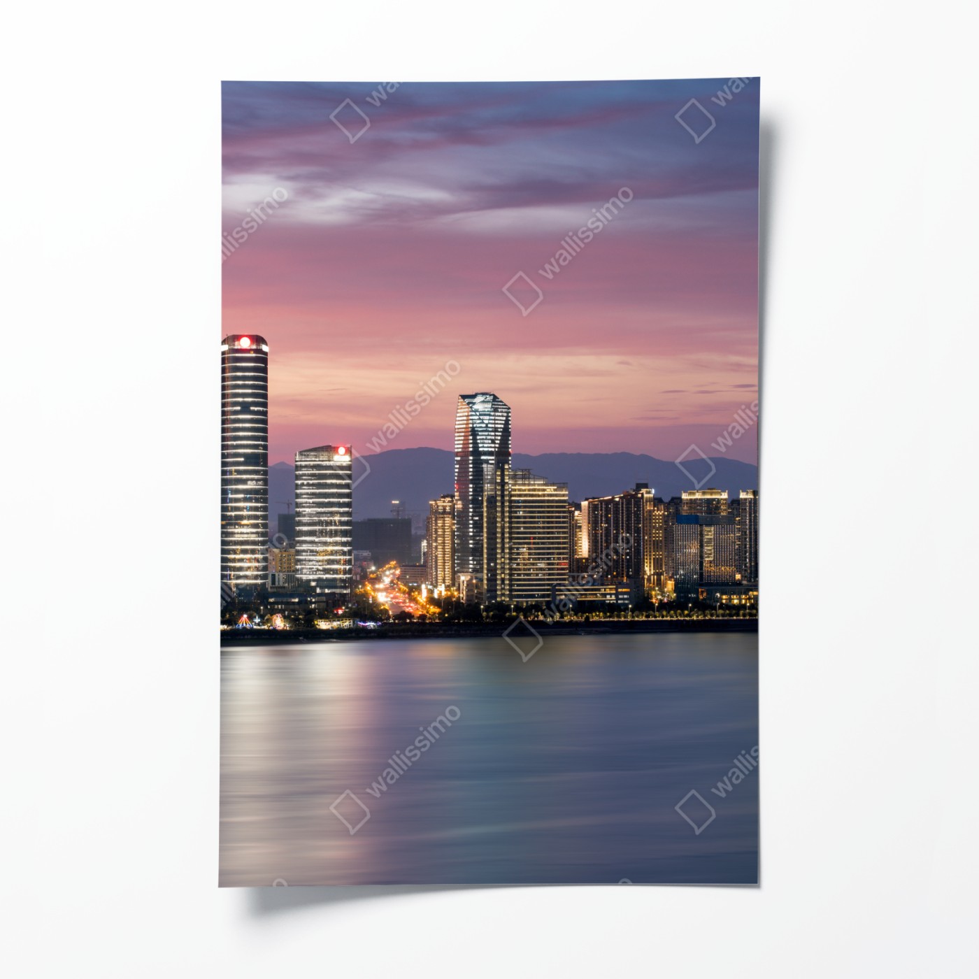 Poster Ruhige stadtskyline bei dämmerung