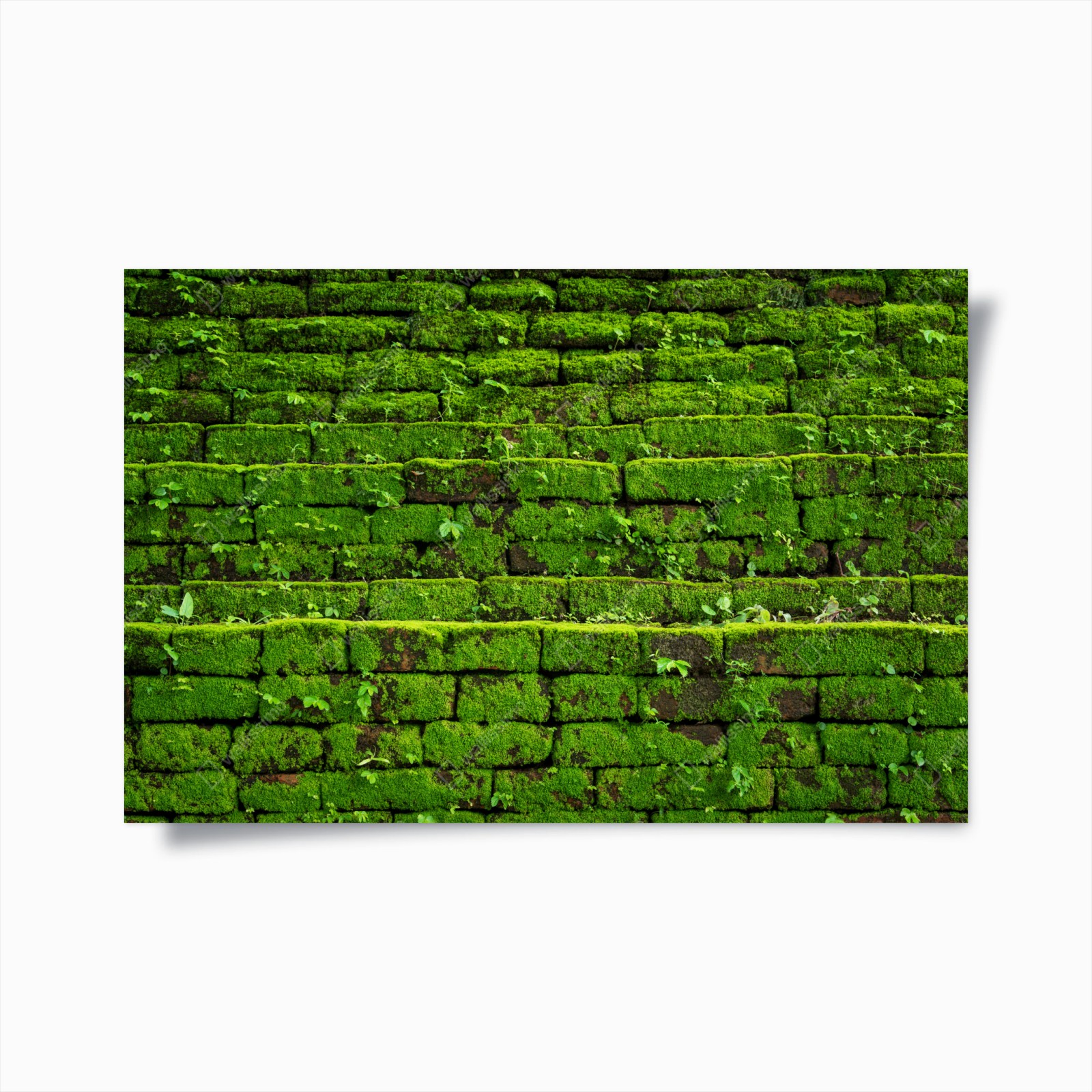 Poster Üppige moosbedeckte ziegelwand