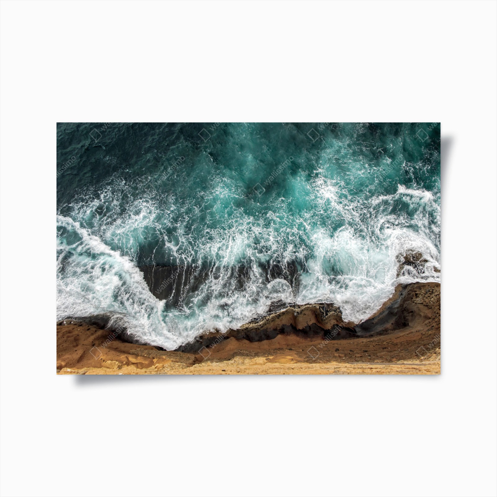 Poster Türkise küste aus der vogelperspektive mit brandenden wellen