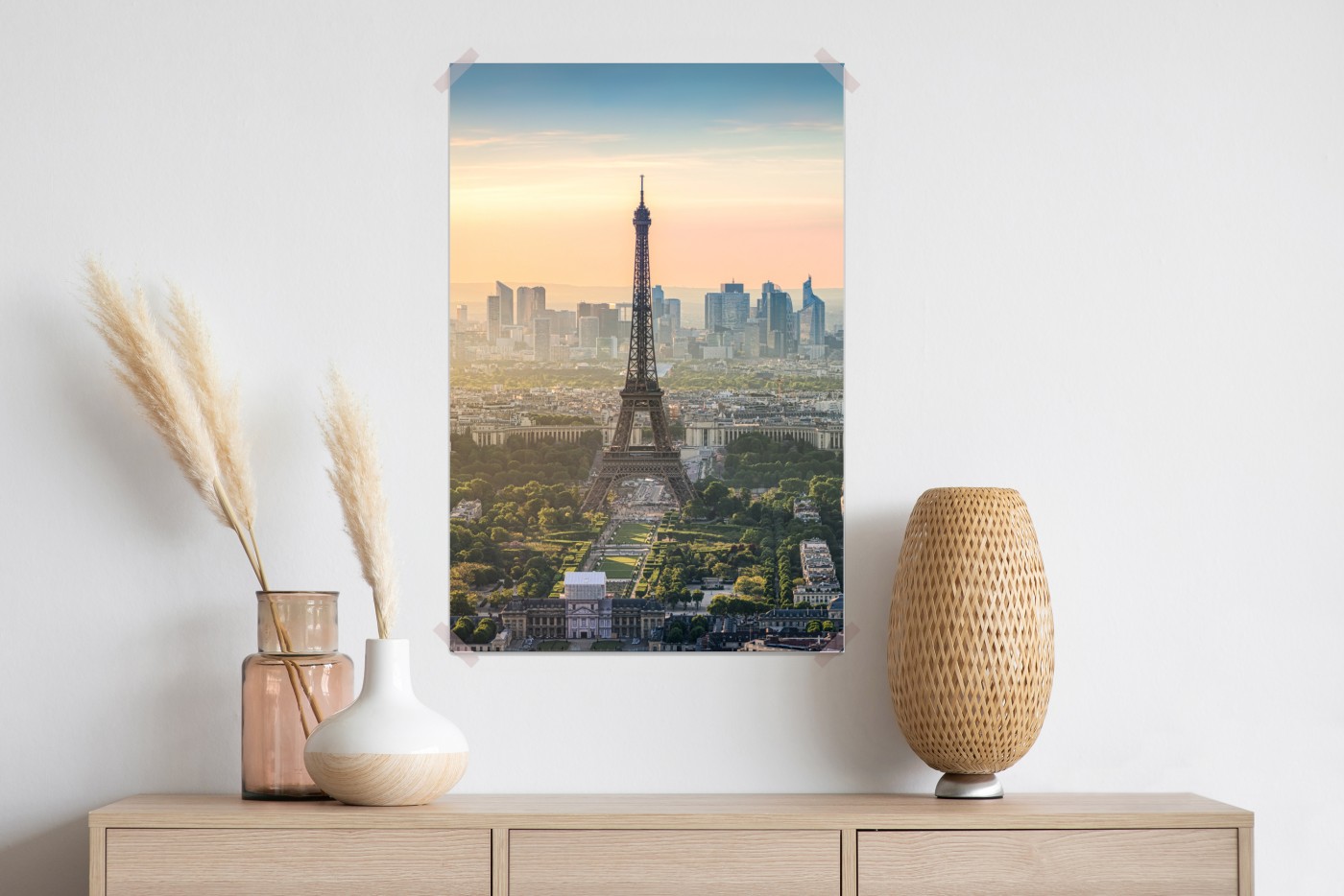 Poster Paris stadtbild bei sonnenuntergang mit dem Eiffelturm
