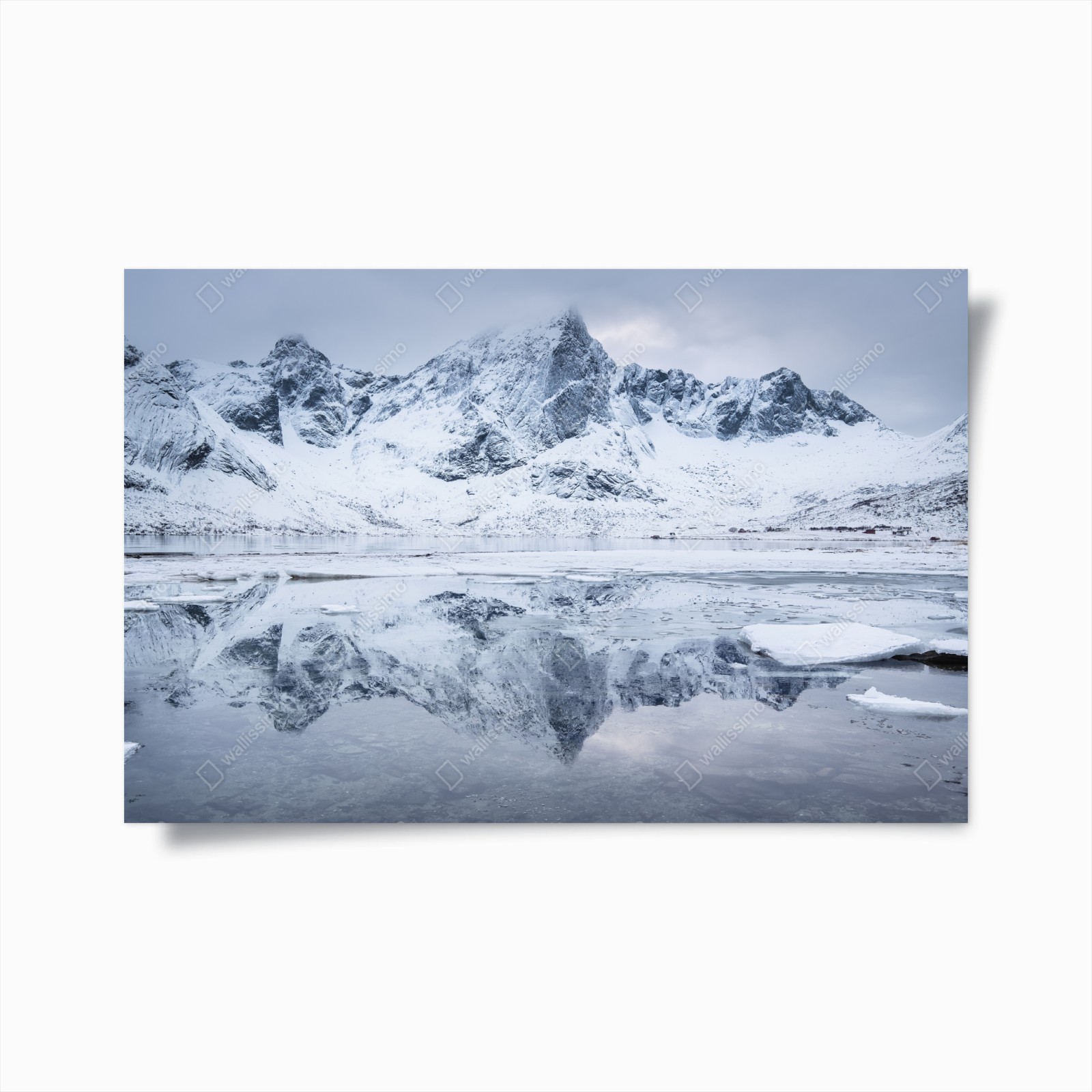 Poster Verschneite bergspiegelung in Norwegen