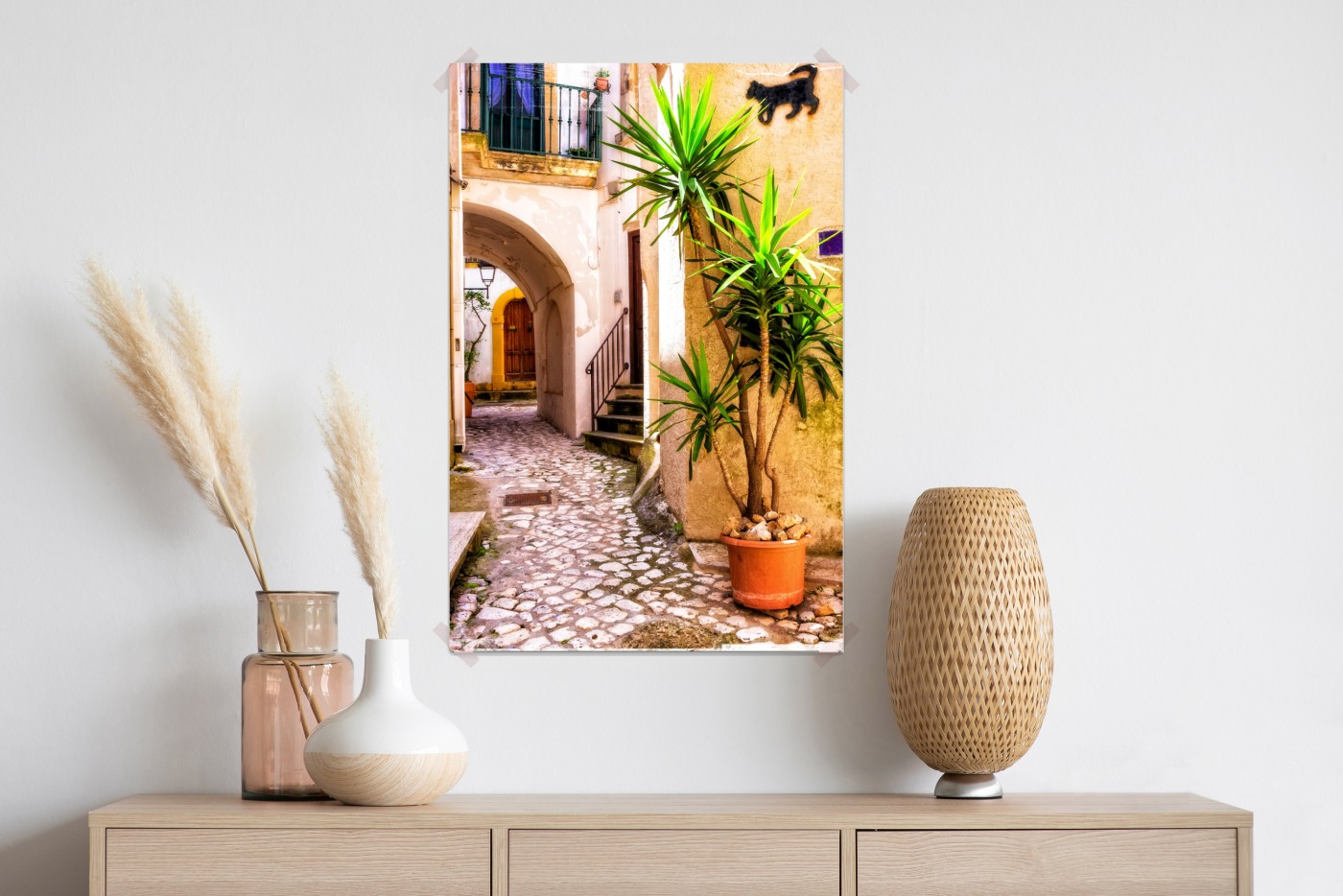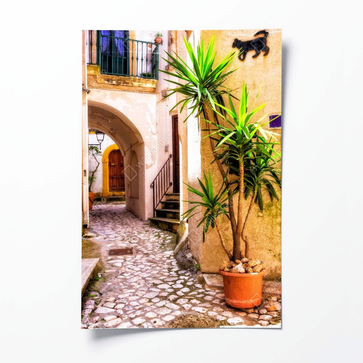 Poster Sonnige mediterrane gasse mit grünen jalousien