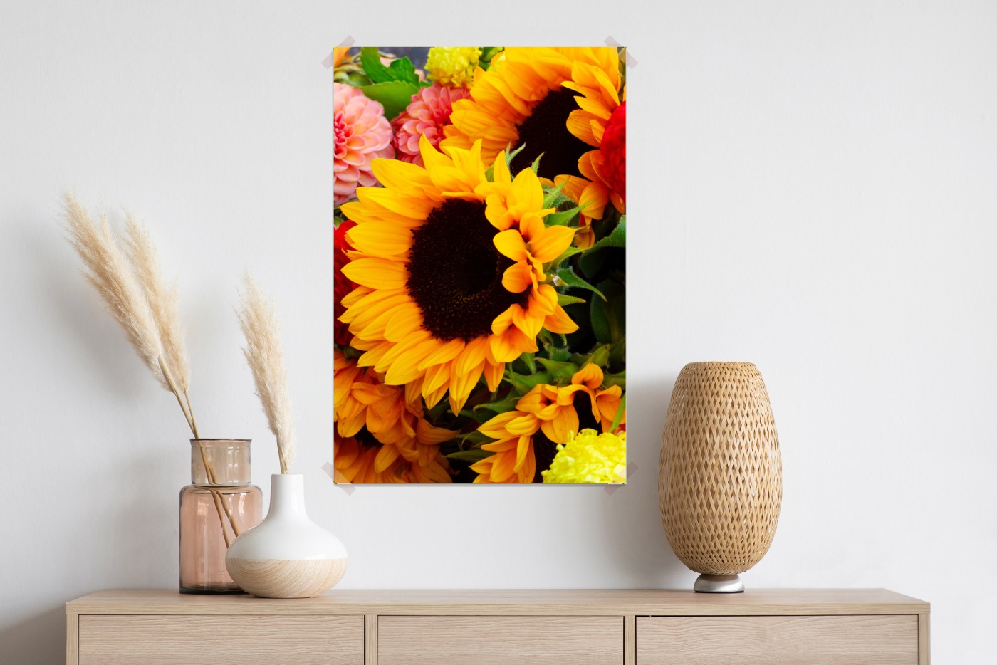 Poster Nahaufnahme sonnenblumen- und dahlienstrauß