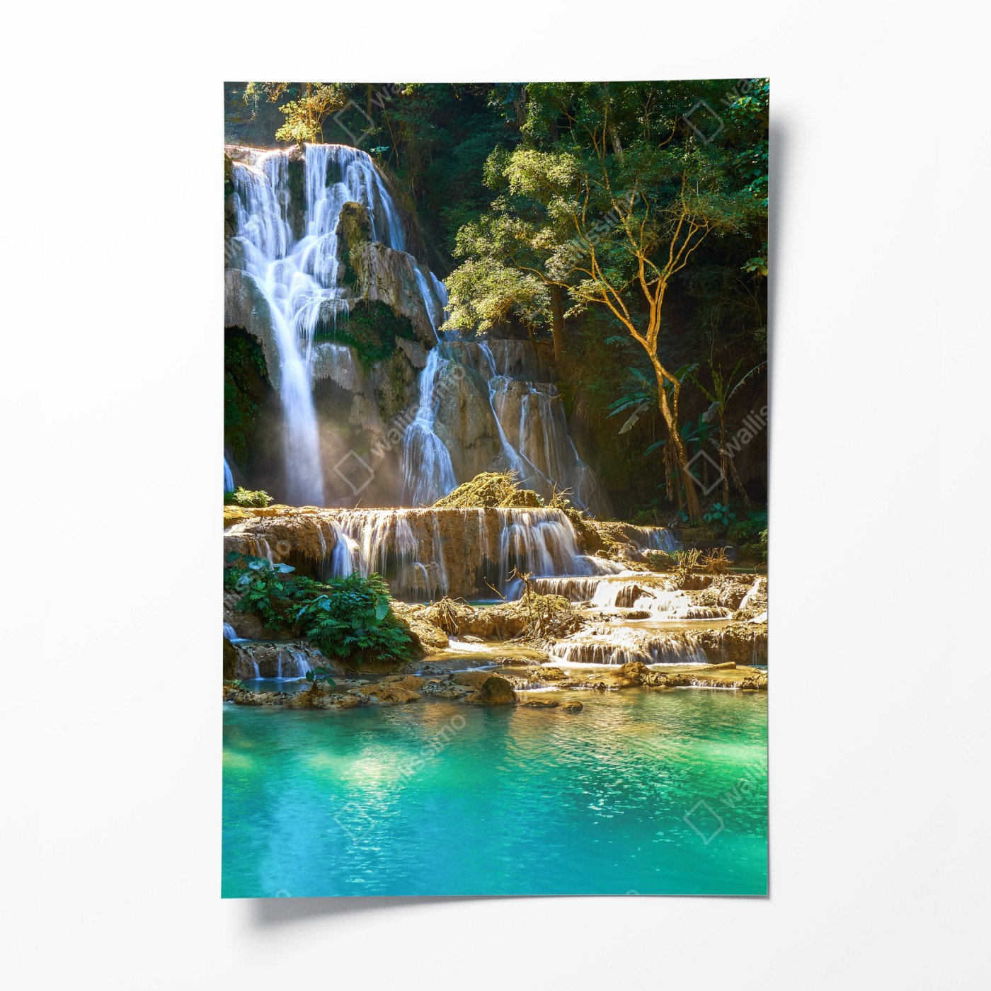 Poster Türkisfarbener wasserfall im üppigen wald