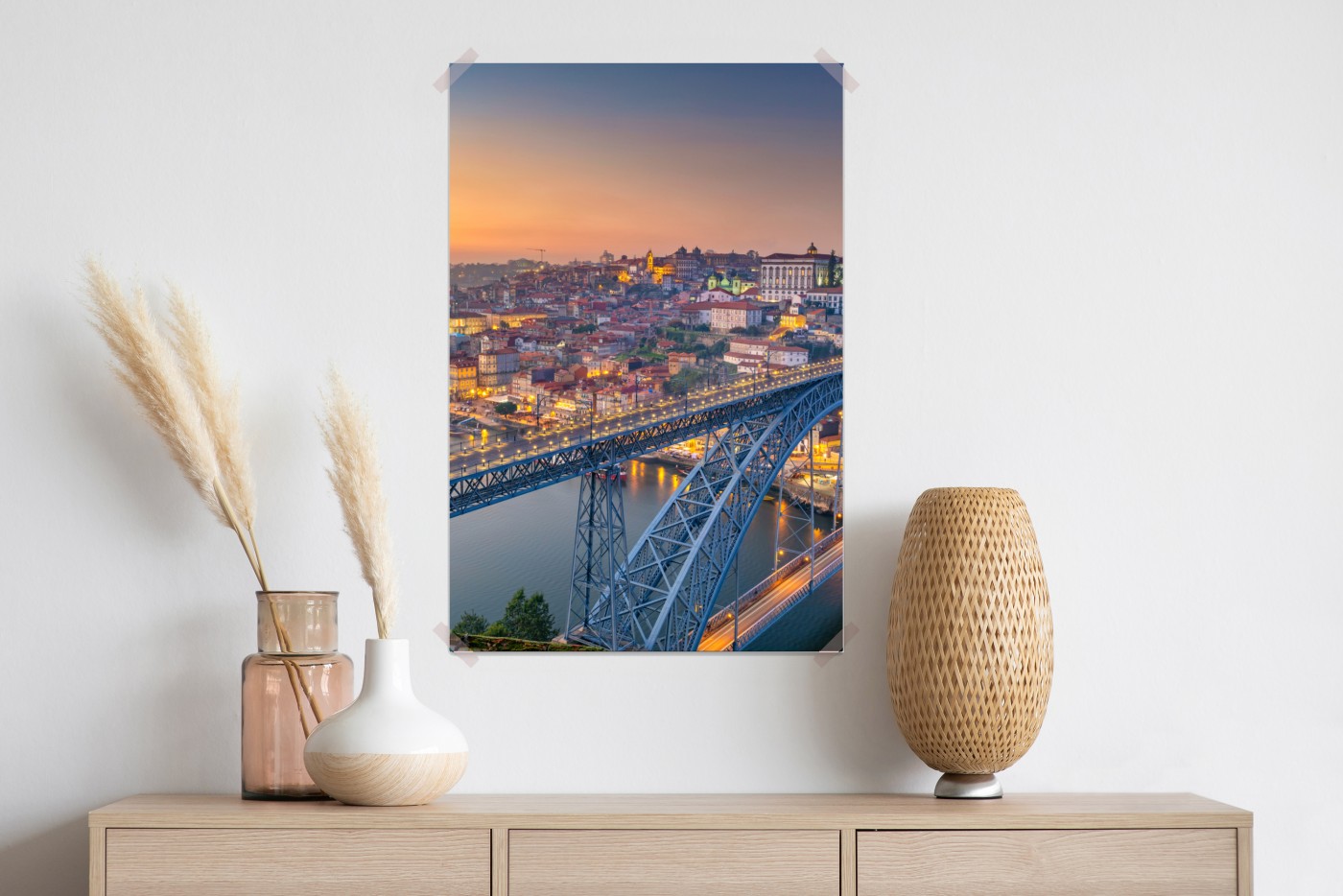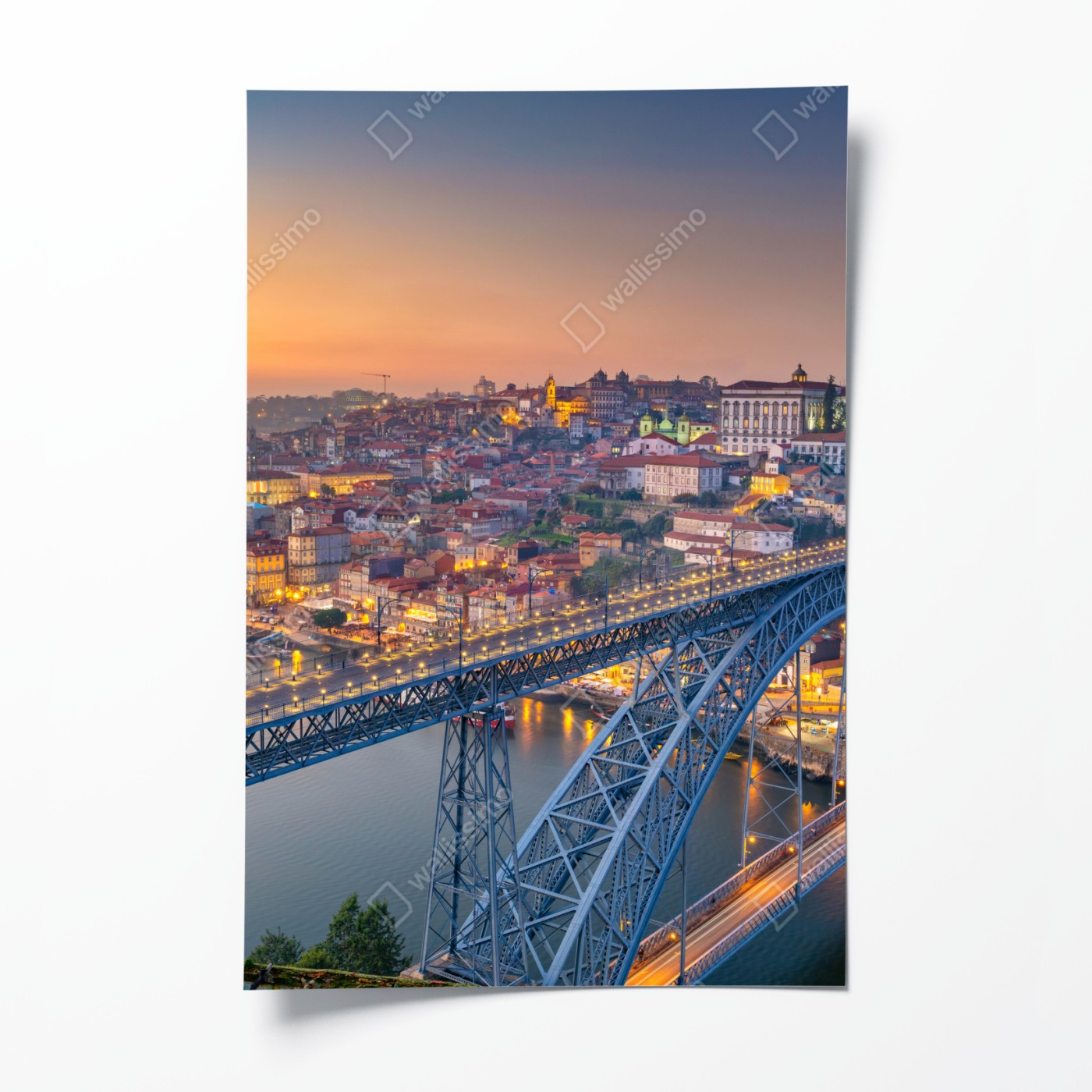 Poster Porto skyline bei dämmerung mit Dom Luís I