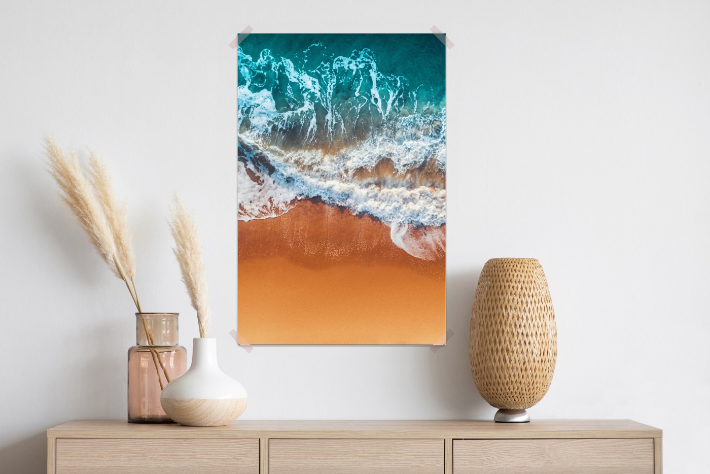 Poster Luftaufnahme türkisfarbener wellen an einem sandstrand