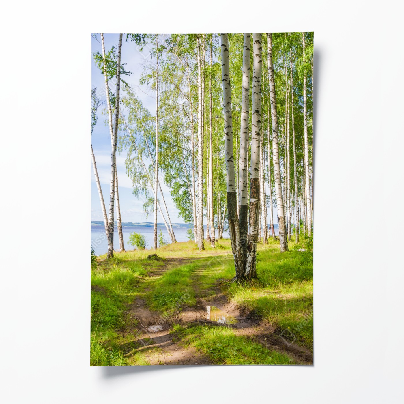 Poster Sonnige birkenlichtung am wasser