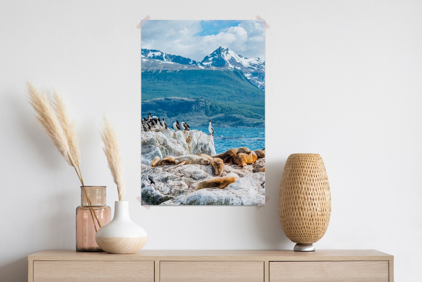 Poster seelöwen und seevögel an der felsküste – Wallnifity®