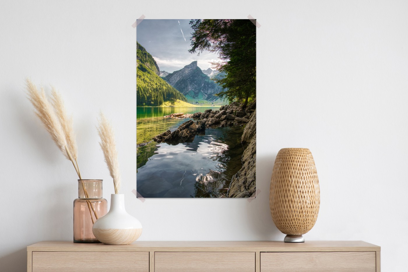 Poster Ruhiger bergsee mit spiegelungen im wald