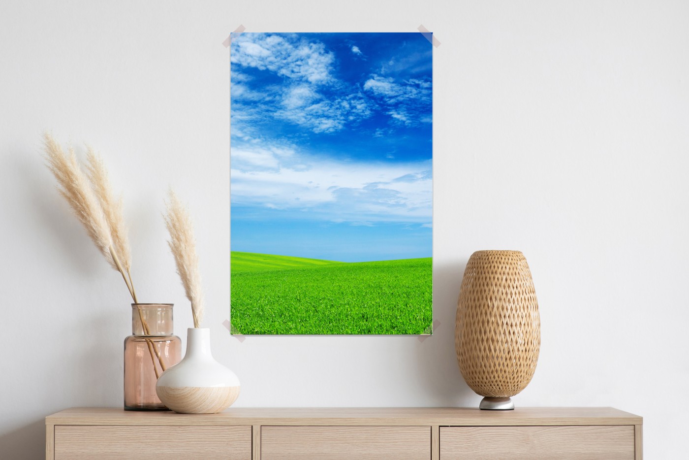 Poster Grüne wiese unter blauem himmel