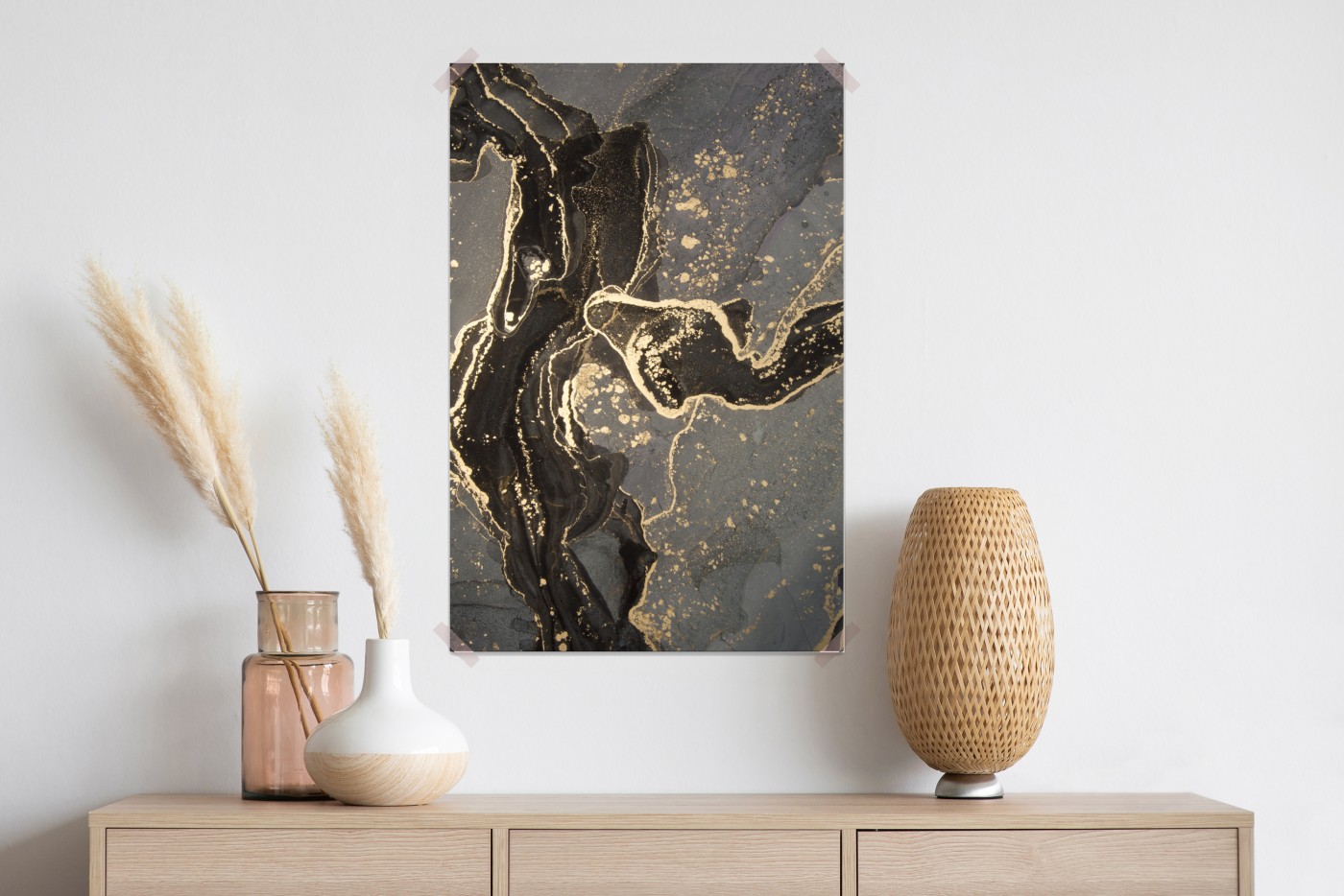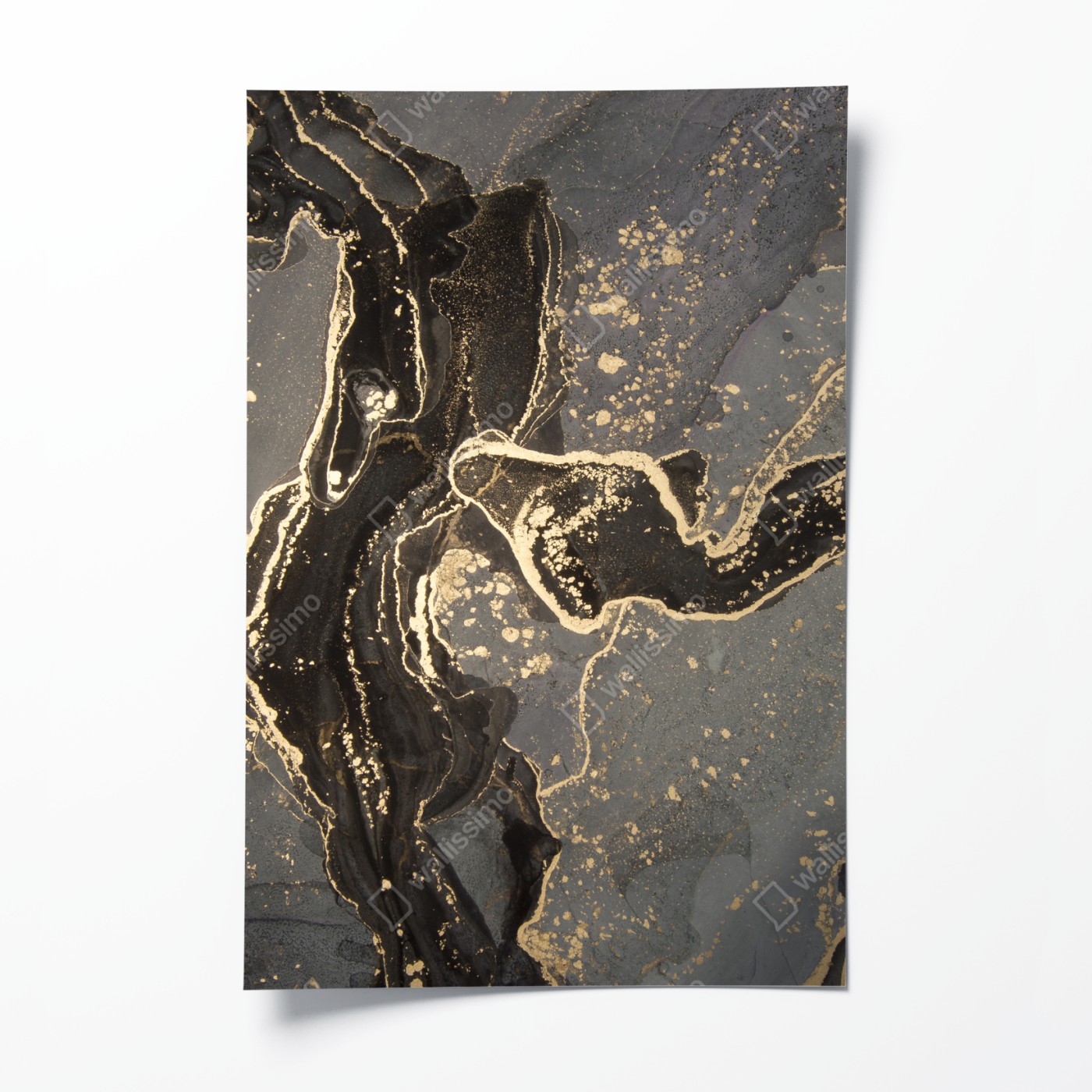 Poster luxuriöser schwarz-goldener marmor abstrakt – Wallnifity®