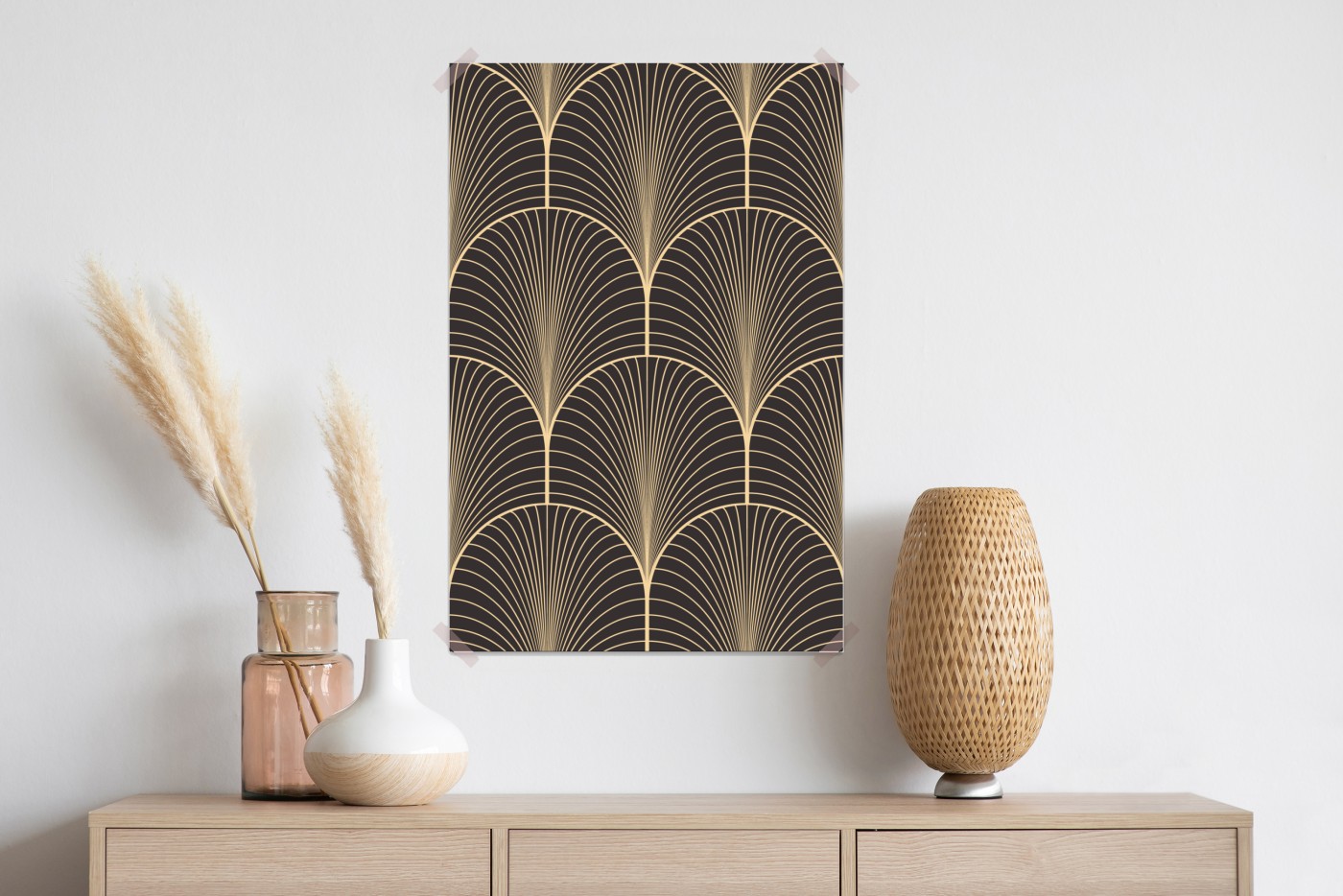 Verleihen Sie Ihrem Raum mit einem goldenen art deco fächermuster Eleganz und eine zeitlose Luxusatmosphäre.MehrWeniger