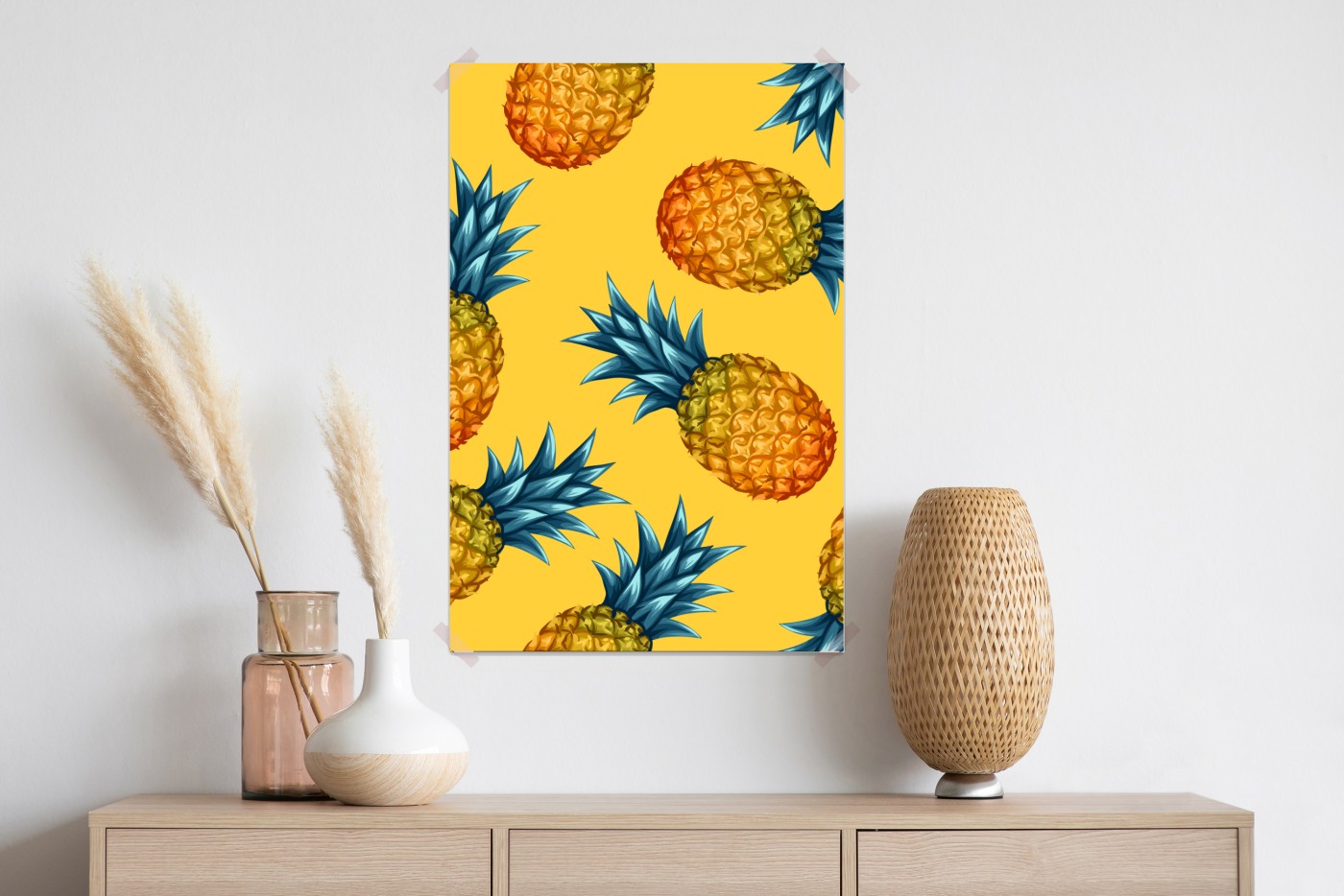 Poster tropisches ananasmuster auf gelbem hintergrund – Wallnifity®