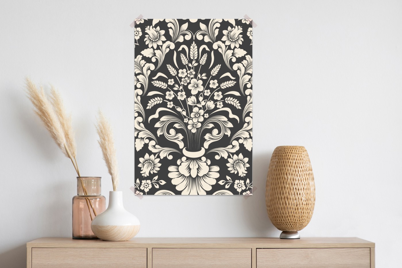Poster Vintage blumiges damastmuster