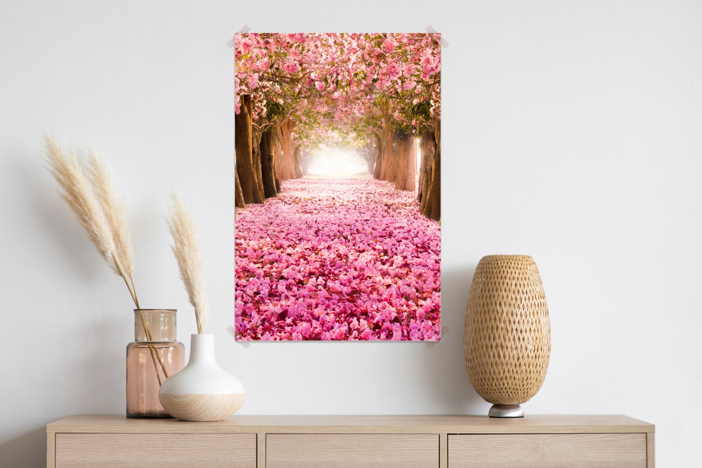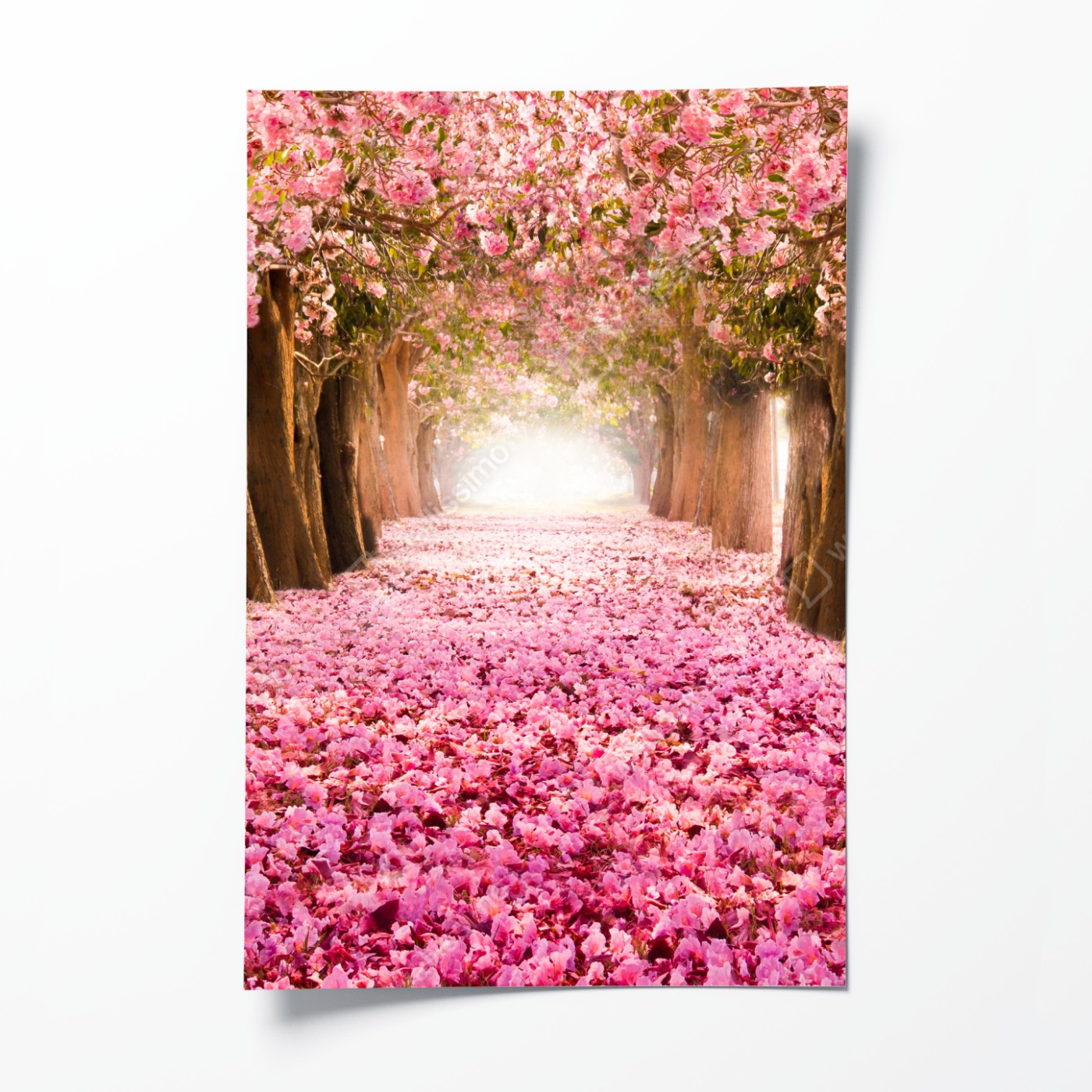 Poster Rosa blütenallee unter kirschbäumen