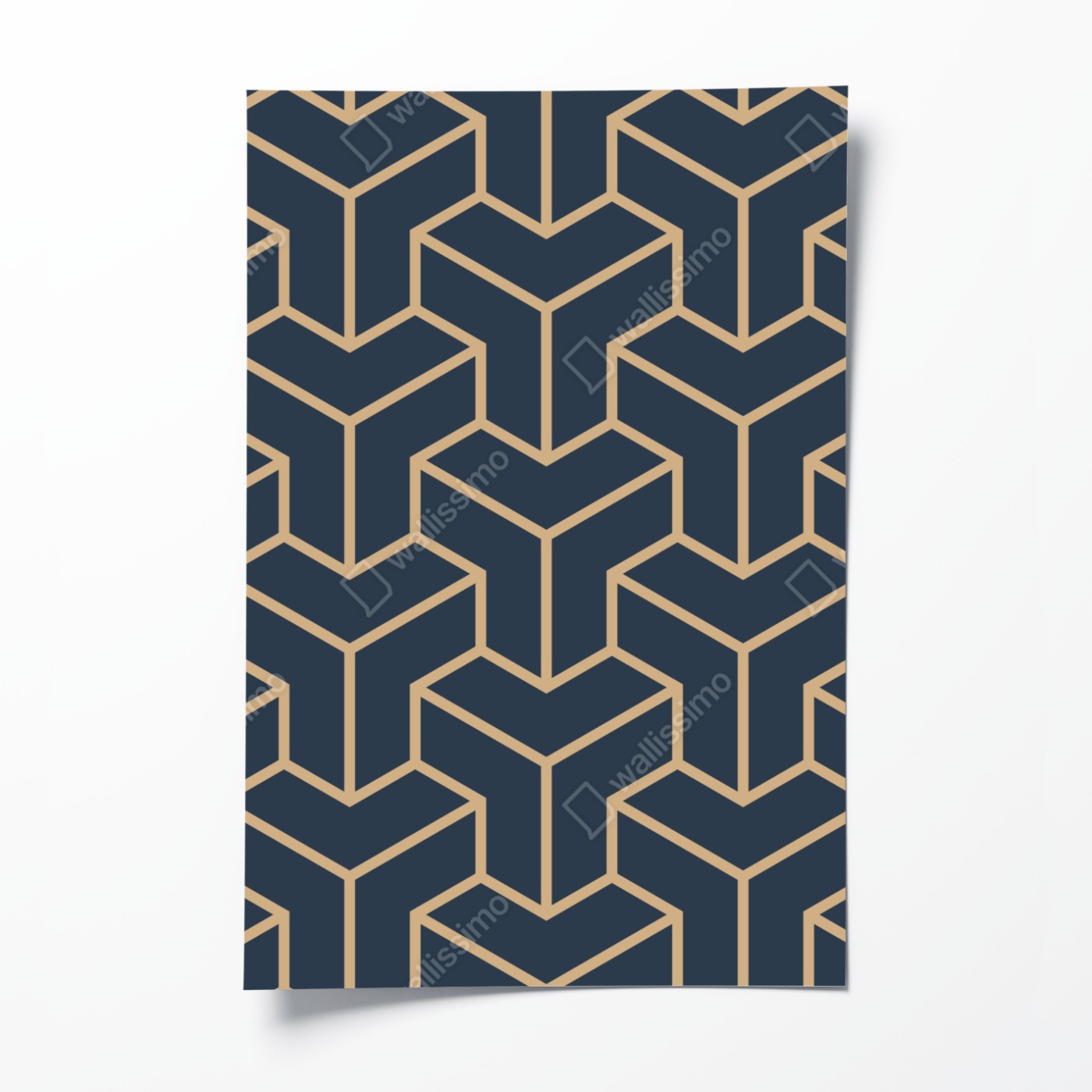 Poster marineblaues geometrisches würfelmuster – Wallnifity®