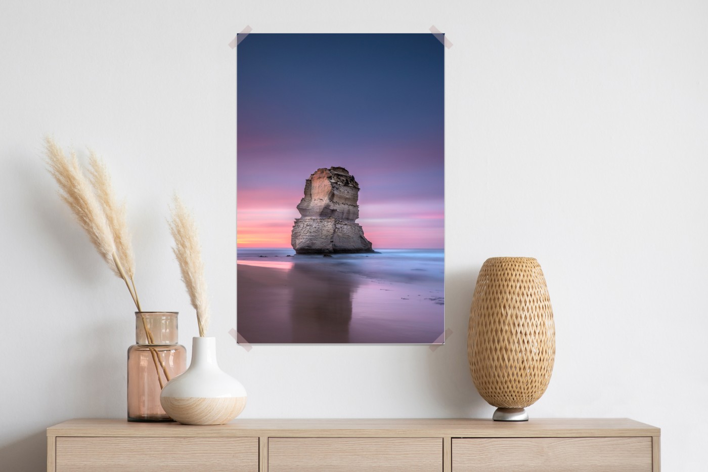Poster Ruhige küstenlandschaft mit felsformationen bei sonnenuntergang