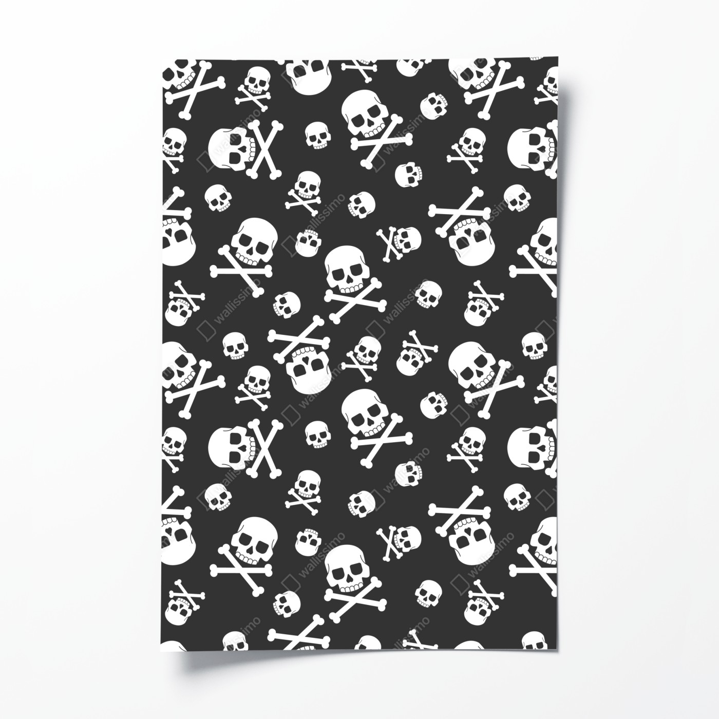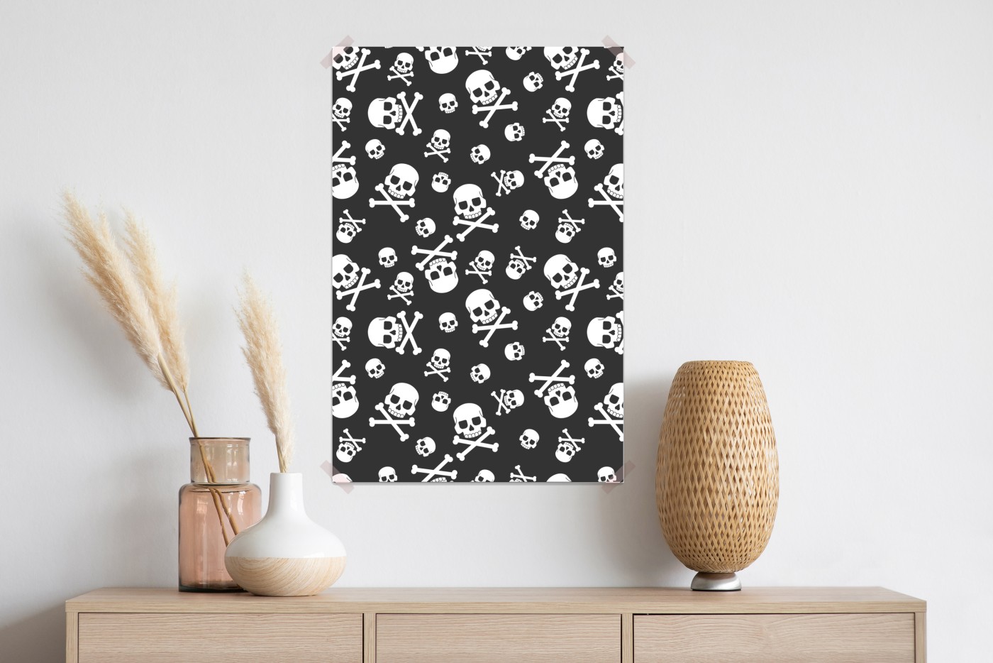 Poster Weißes totenkopf muster auf grauem hintergrund