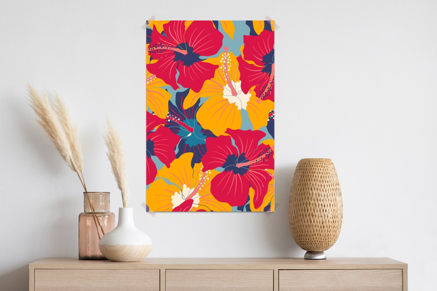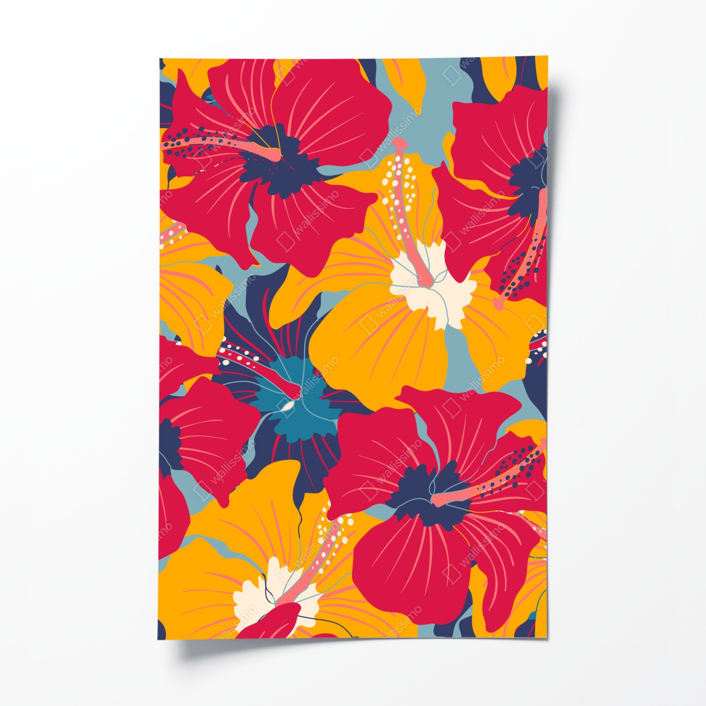 Poster lebhaftes hibiskusmuster – Wallnifity®