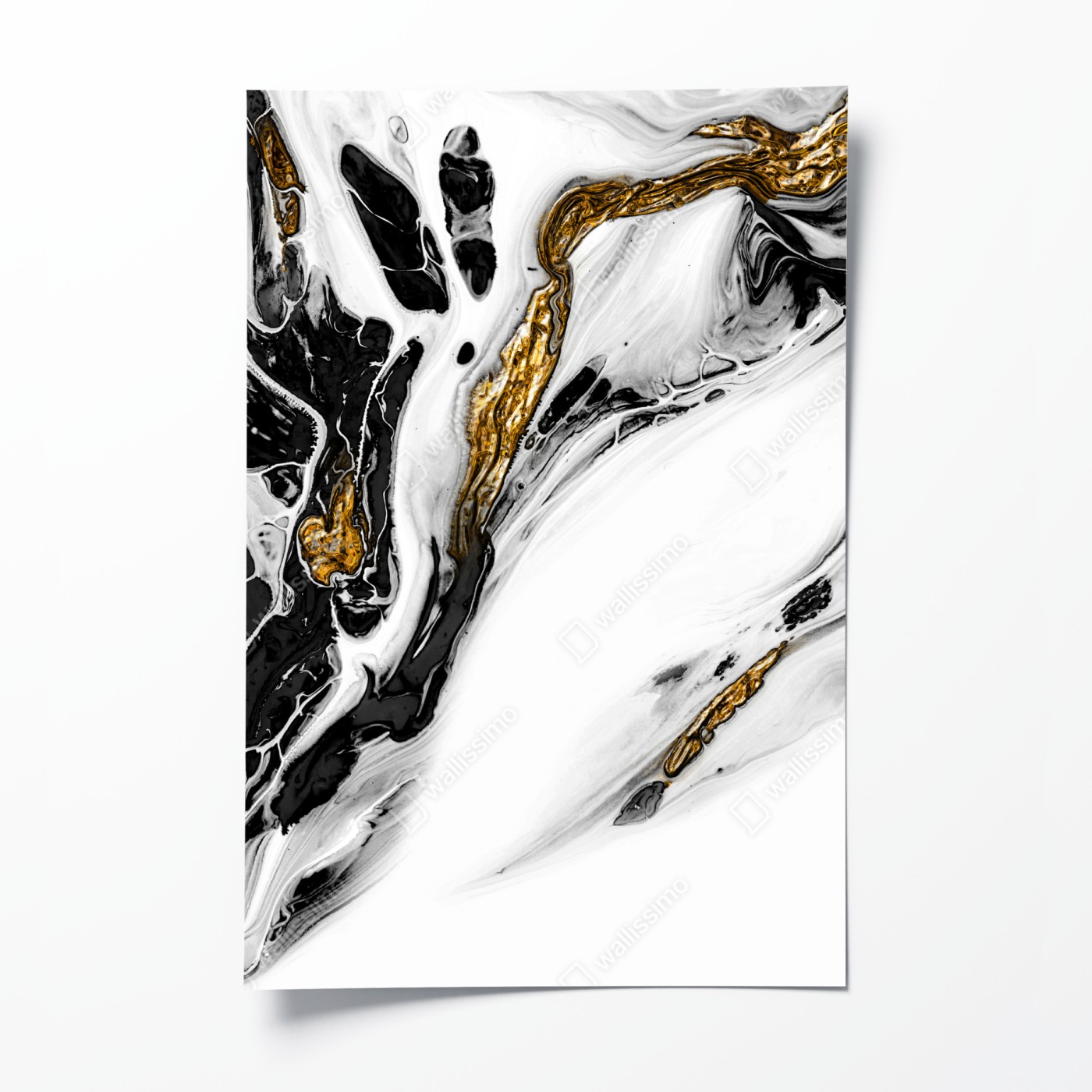 Poster Schwarz-weiße abstraktion mit goldenen adern