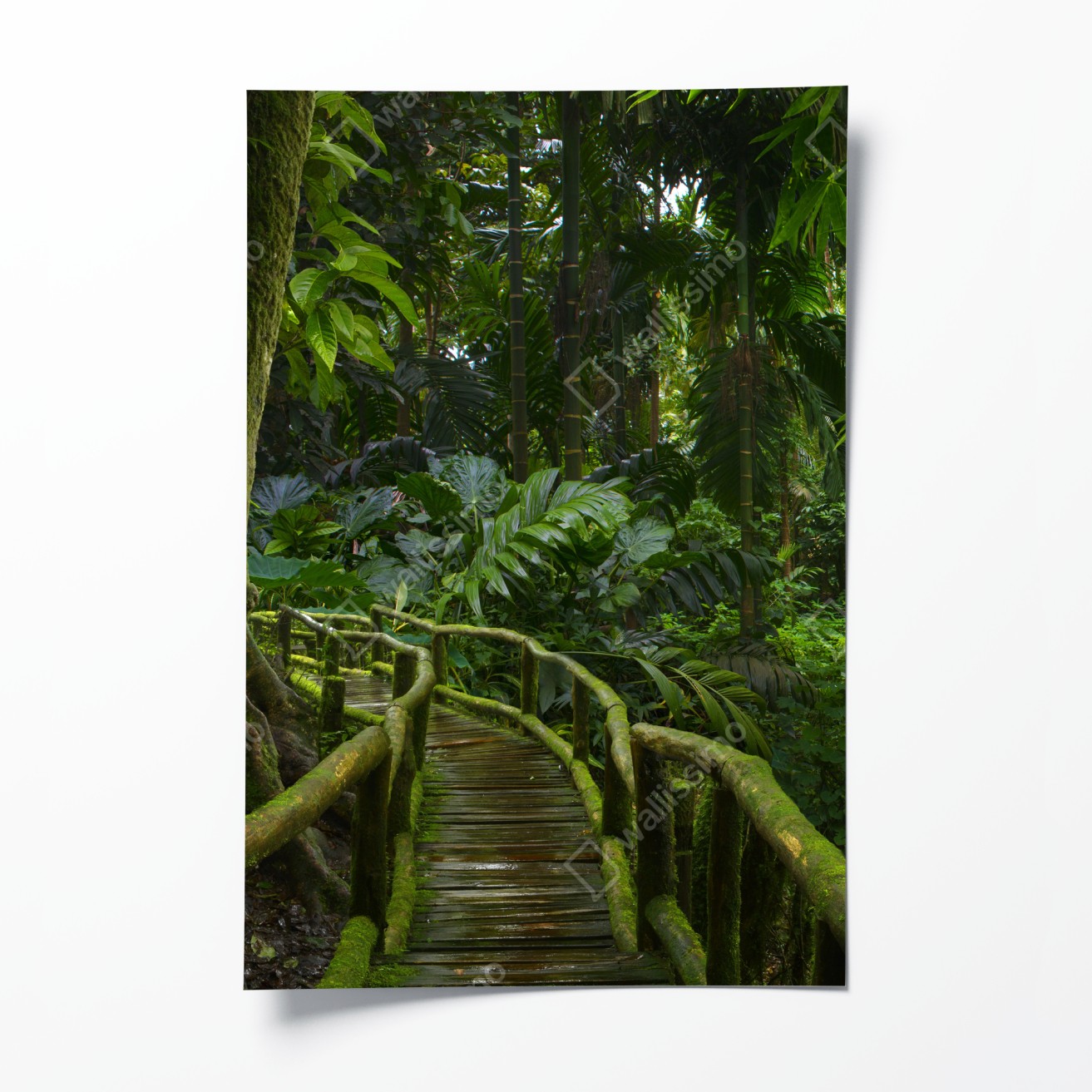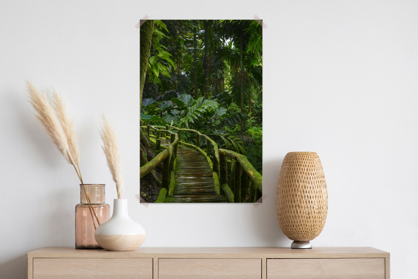 Poster Ruhiger dschungelsteg durch üppigen regenwald