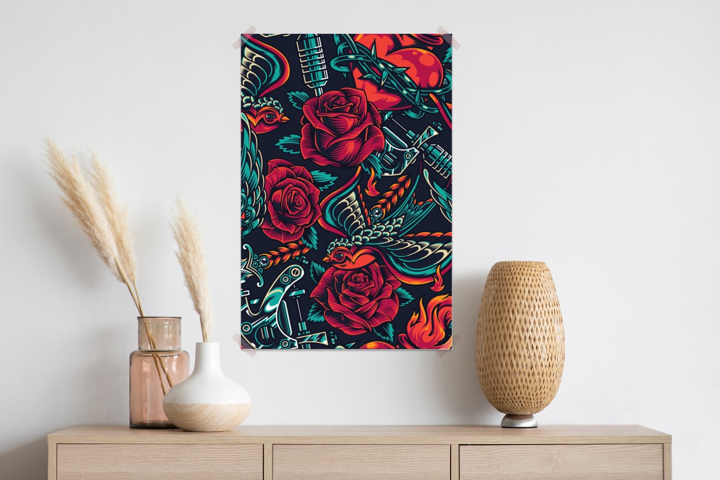 Poster Kräftiges tätowierungsmuster mit rosen