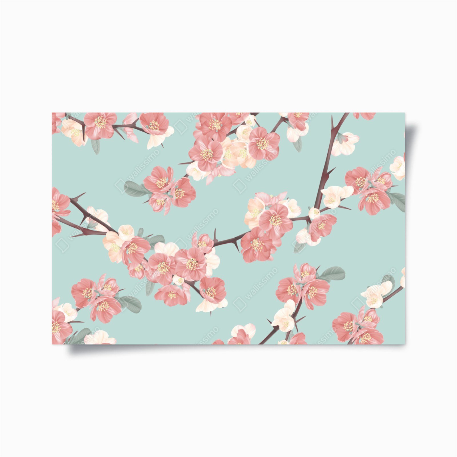 Poster Pastelliges kirschblütenmuster auf mintfarbenem hintergrund