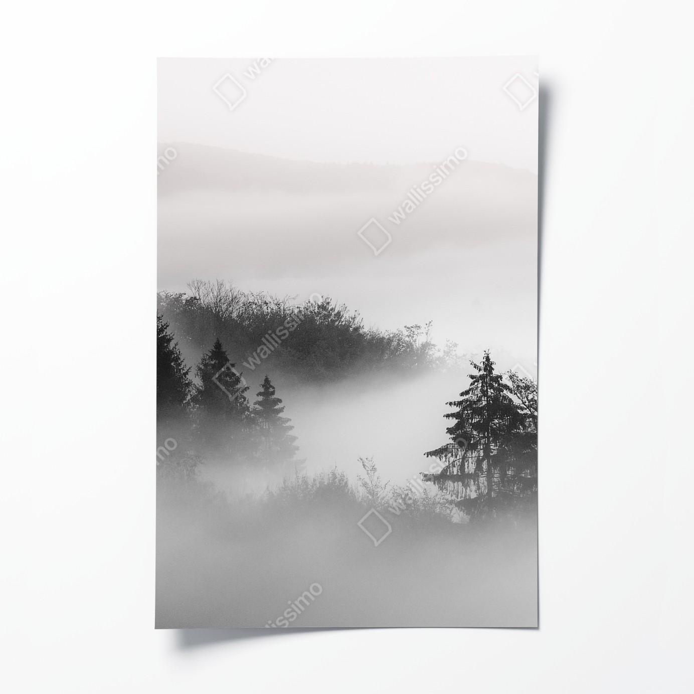 Poster Nebliger wald in grautönen