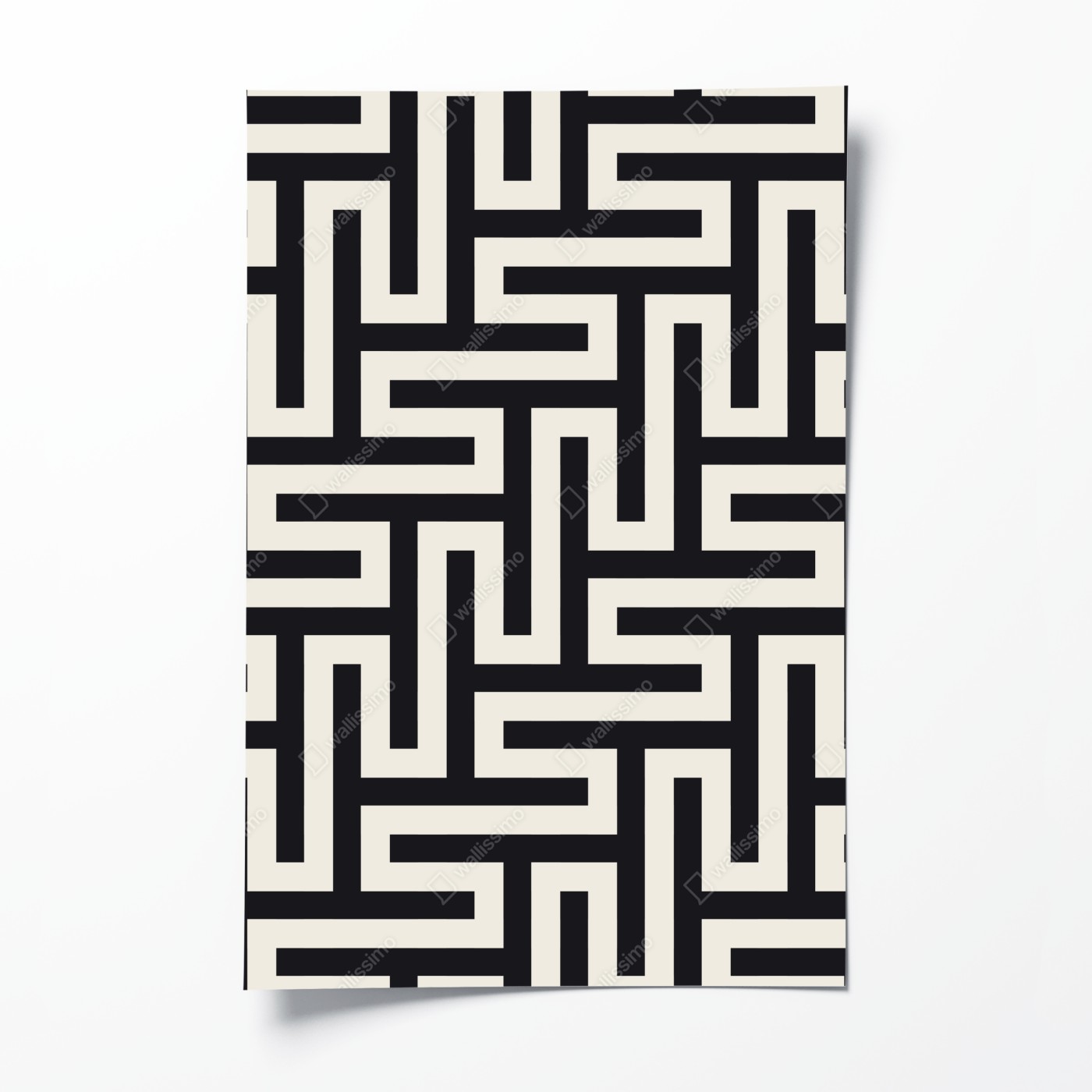 Poster Geometrisches labyrinthmuster in beige und schwarz