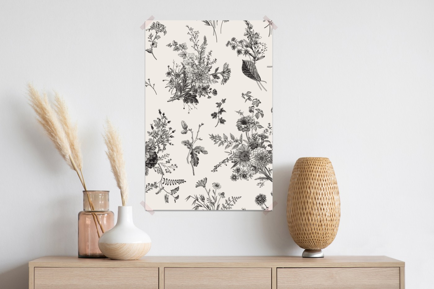 Poster klassisches schwarzweißes blumenmuster – Wallnifity®