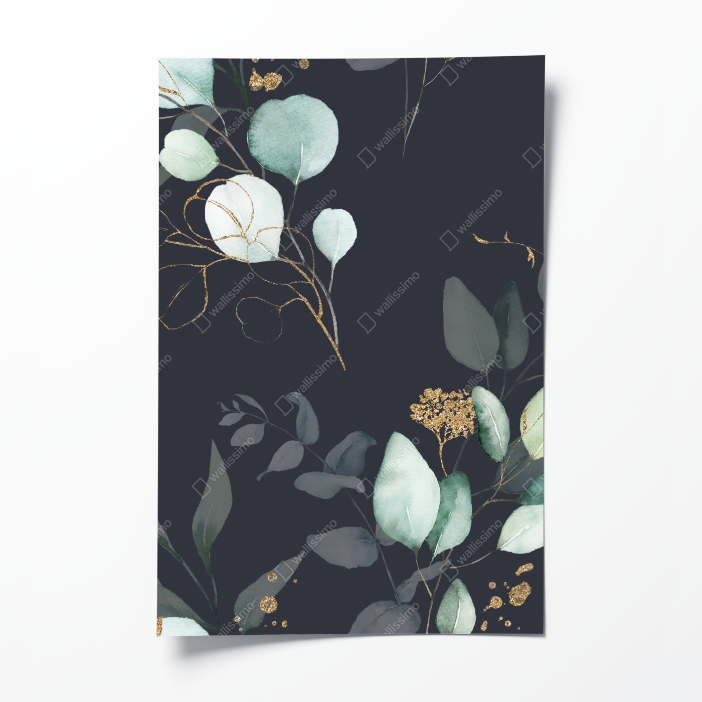 Poster Eukalyptus aquarellblätter auf dunklem hintergrund