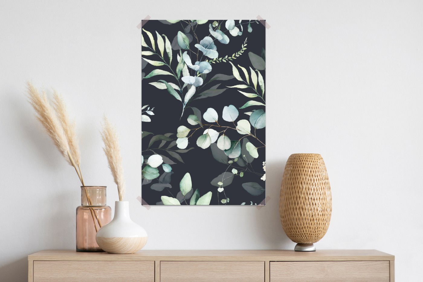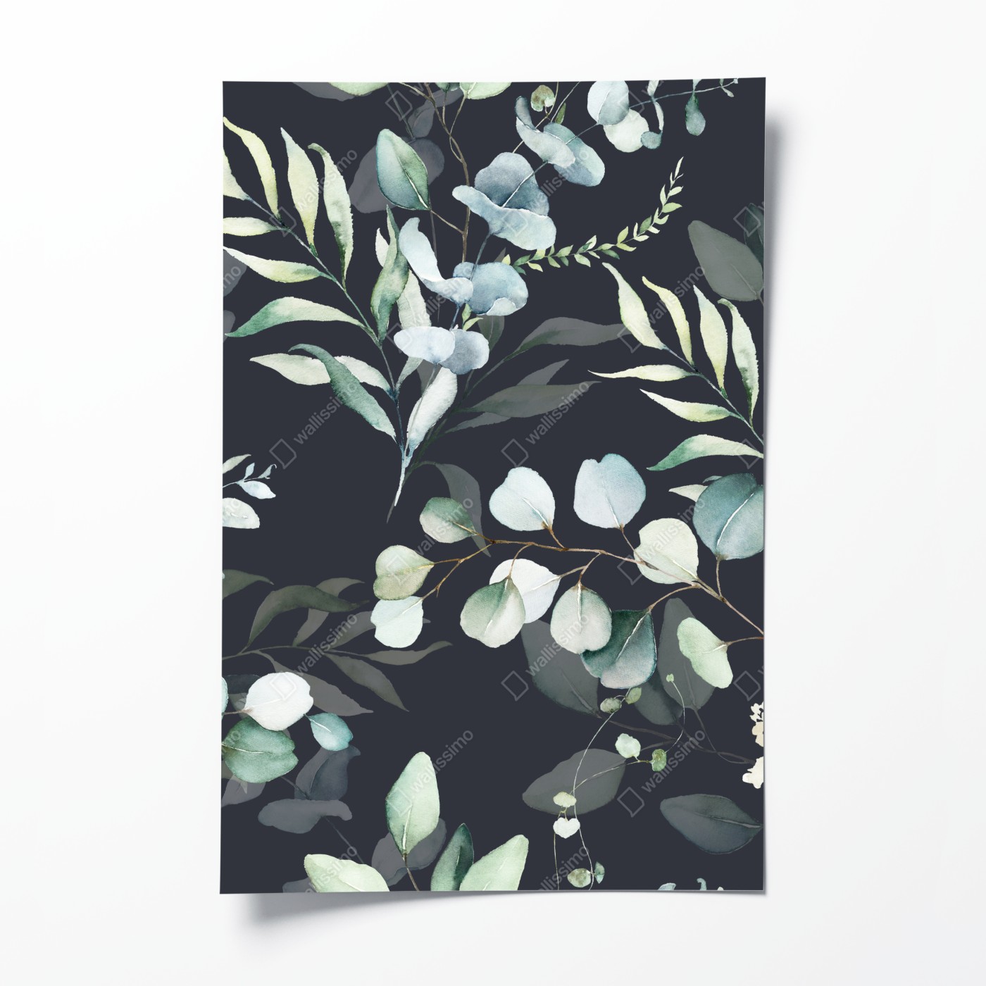 Poster Eukalyptus aquarell botanisches muster auf dunklem hintergrund