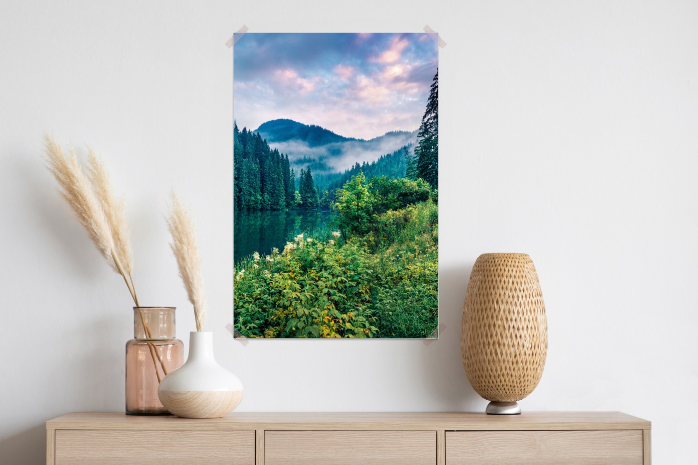 Poster Nebliger sonnenaufgang über Lacu Rosu