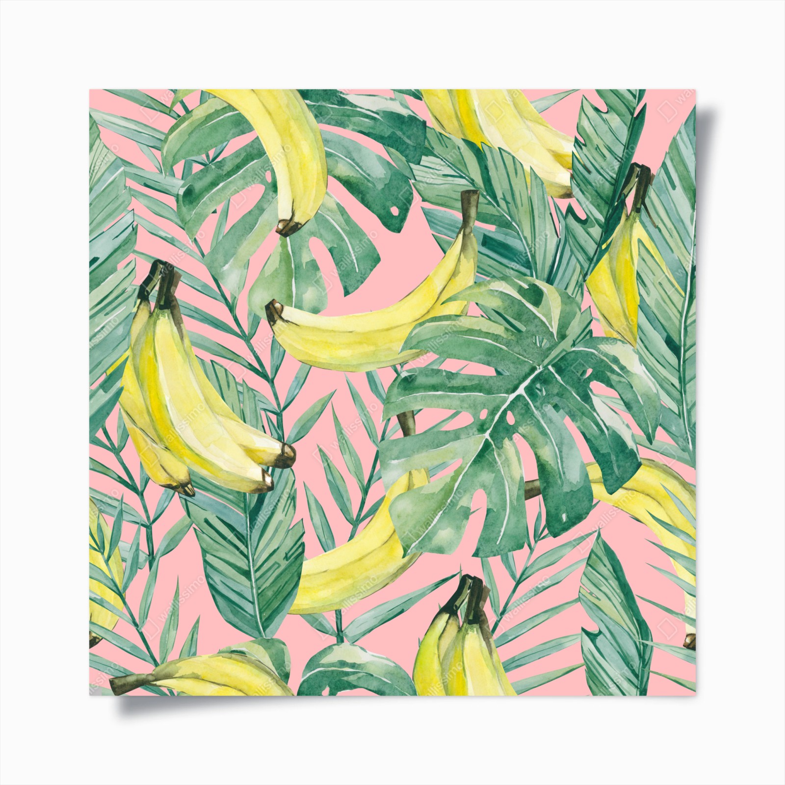 Poster Aquarell-bananen und blättermuster auf rosa hintergrund