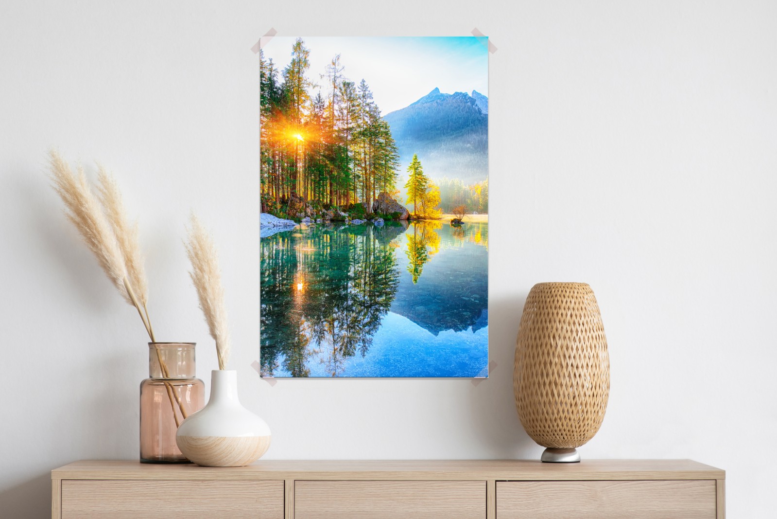 Poster Hintersee herbstlicher sonnenaufgang über dem türkisfarbenen see