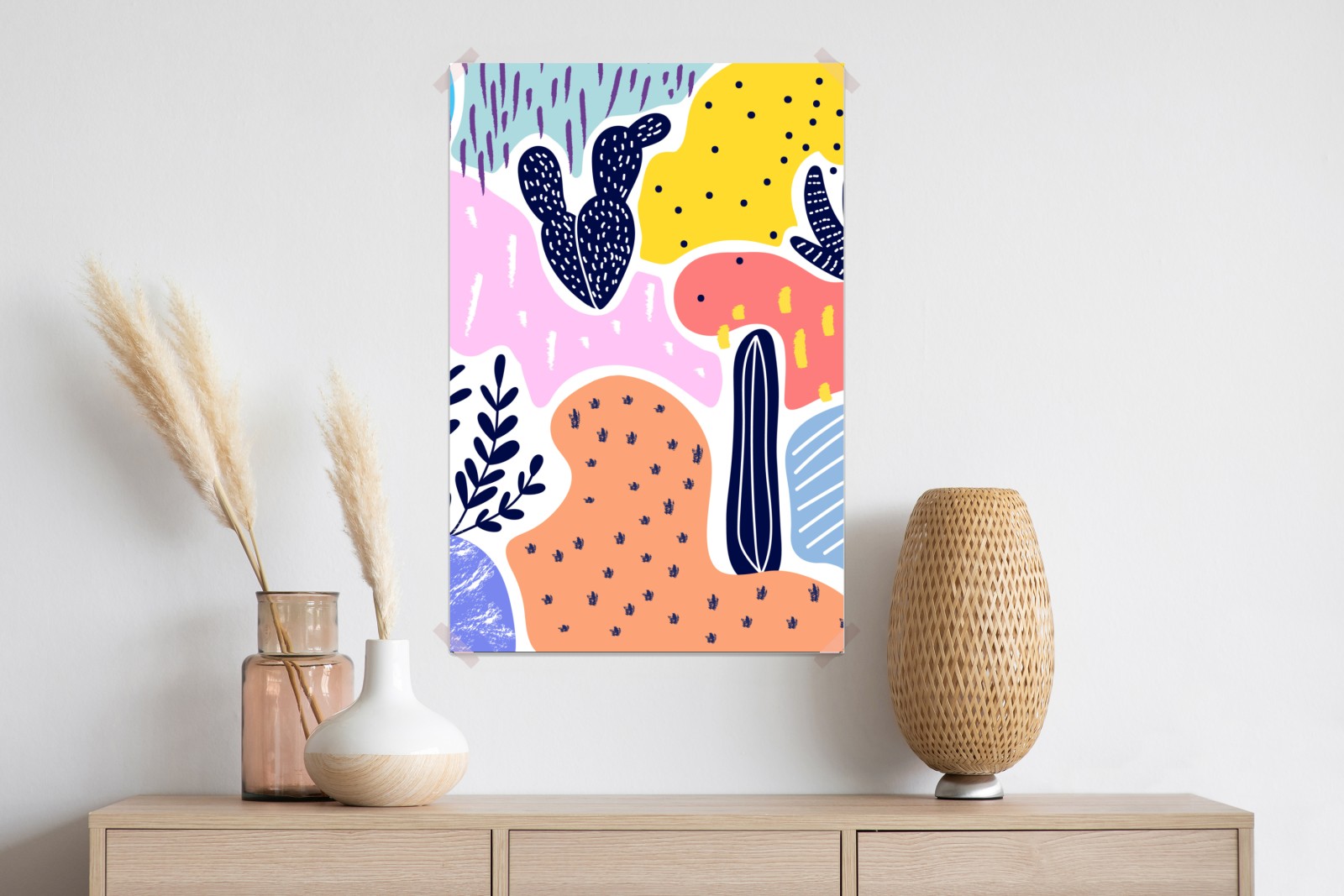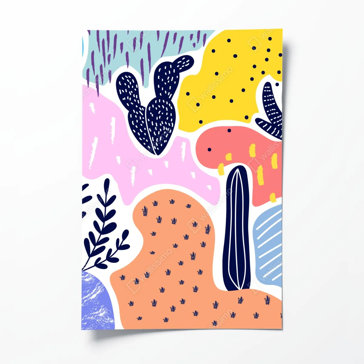 Helles und verspieltes abstraktes Motiv mit organischen Formen und botanischen Elementen, perfekt, um modernen Farbkontrast in jeden Raum zu bringen.