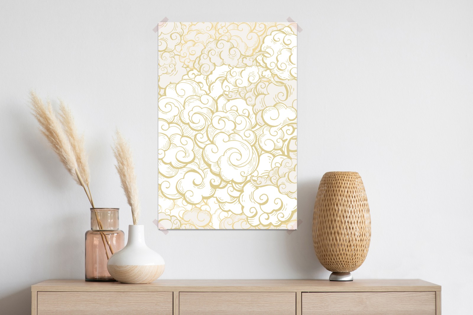 Poster Goldenes ornamentales wolkenmuster