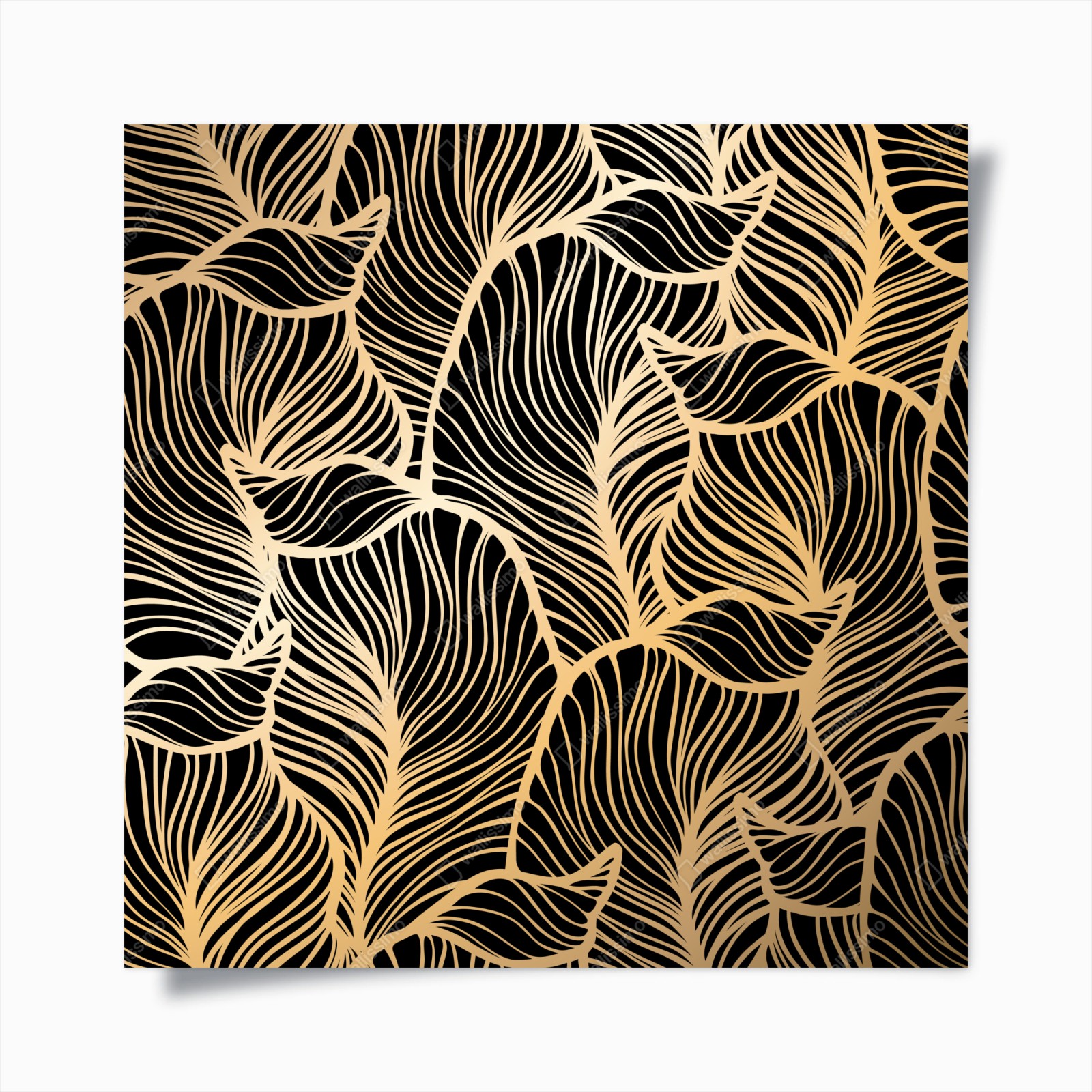 Poster Goldenes blattmuster auf schwarzem hintergrund