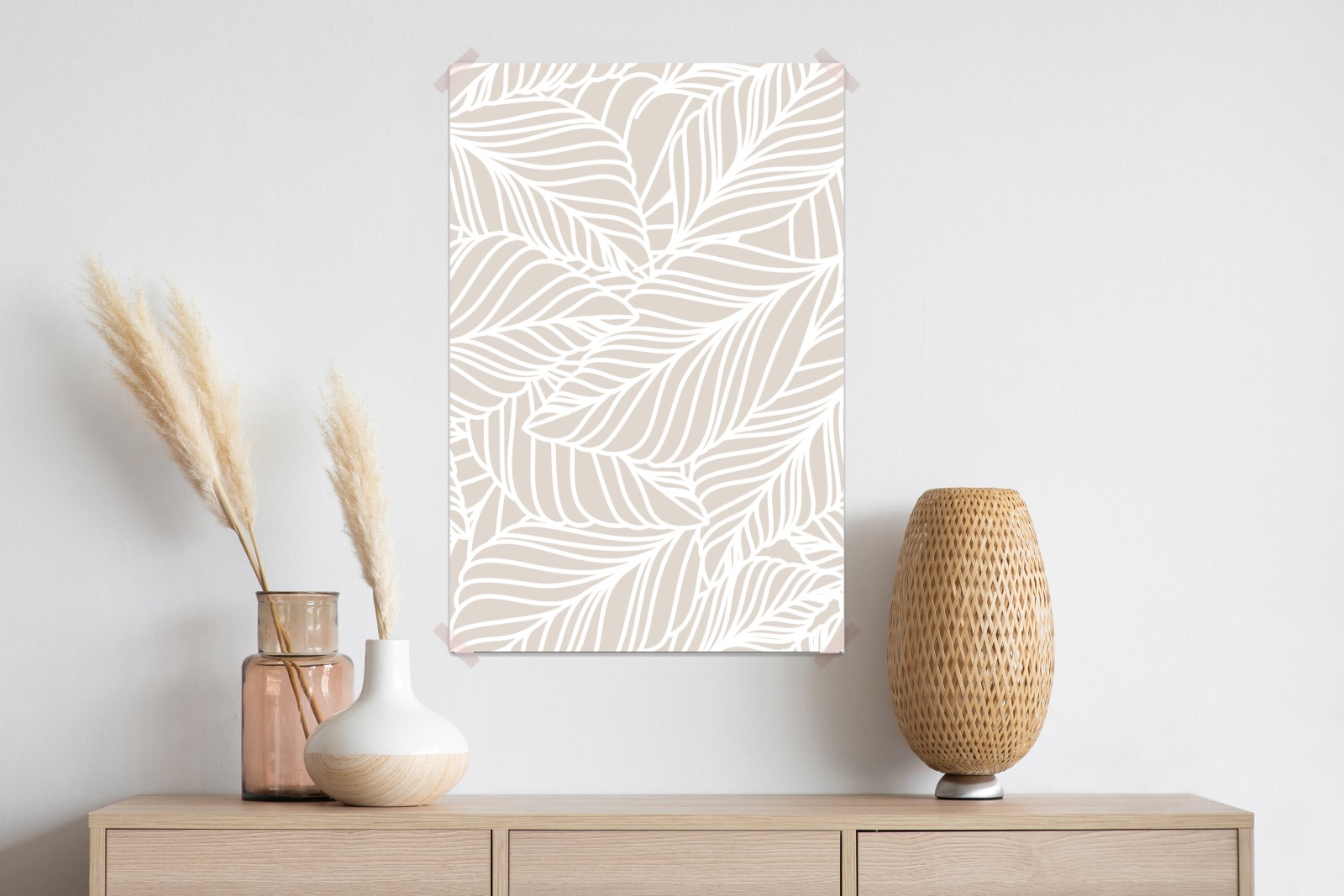 Poster Beige botanisches blattmuster