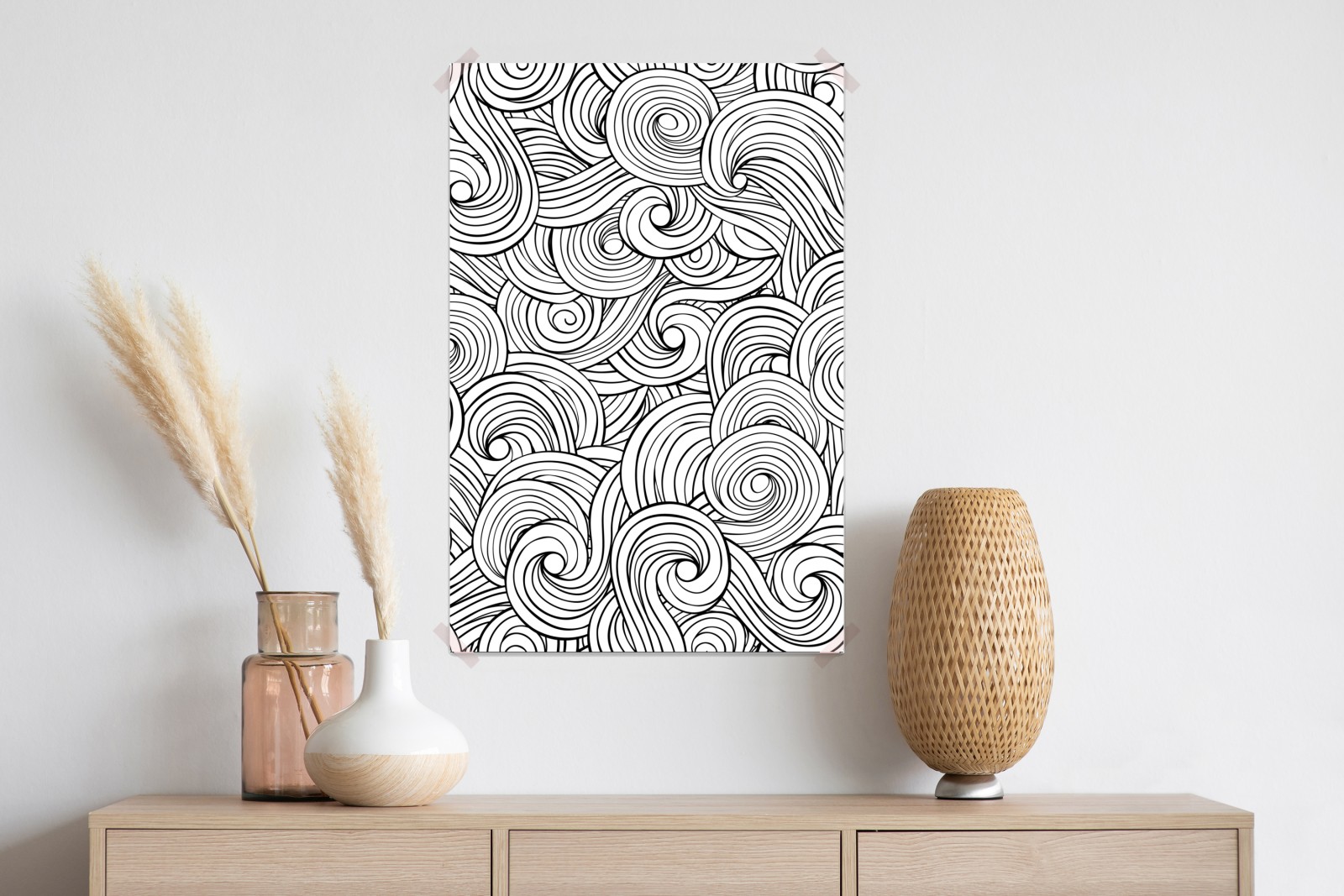 Kräftiges schwarzweißes Spiraldesign, perfekt für moderne Wohnräume und kreative Ausmalprojekte.