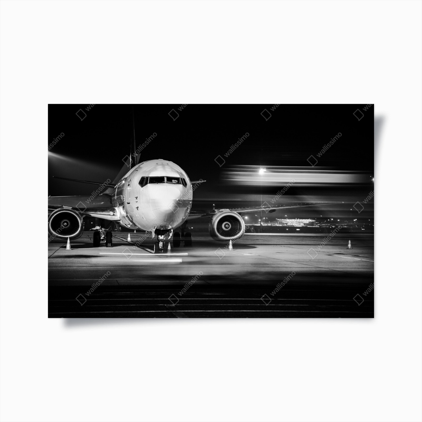 Poster Monochromes jet auf dem rollfeld bei nacht