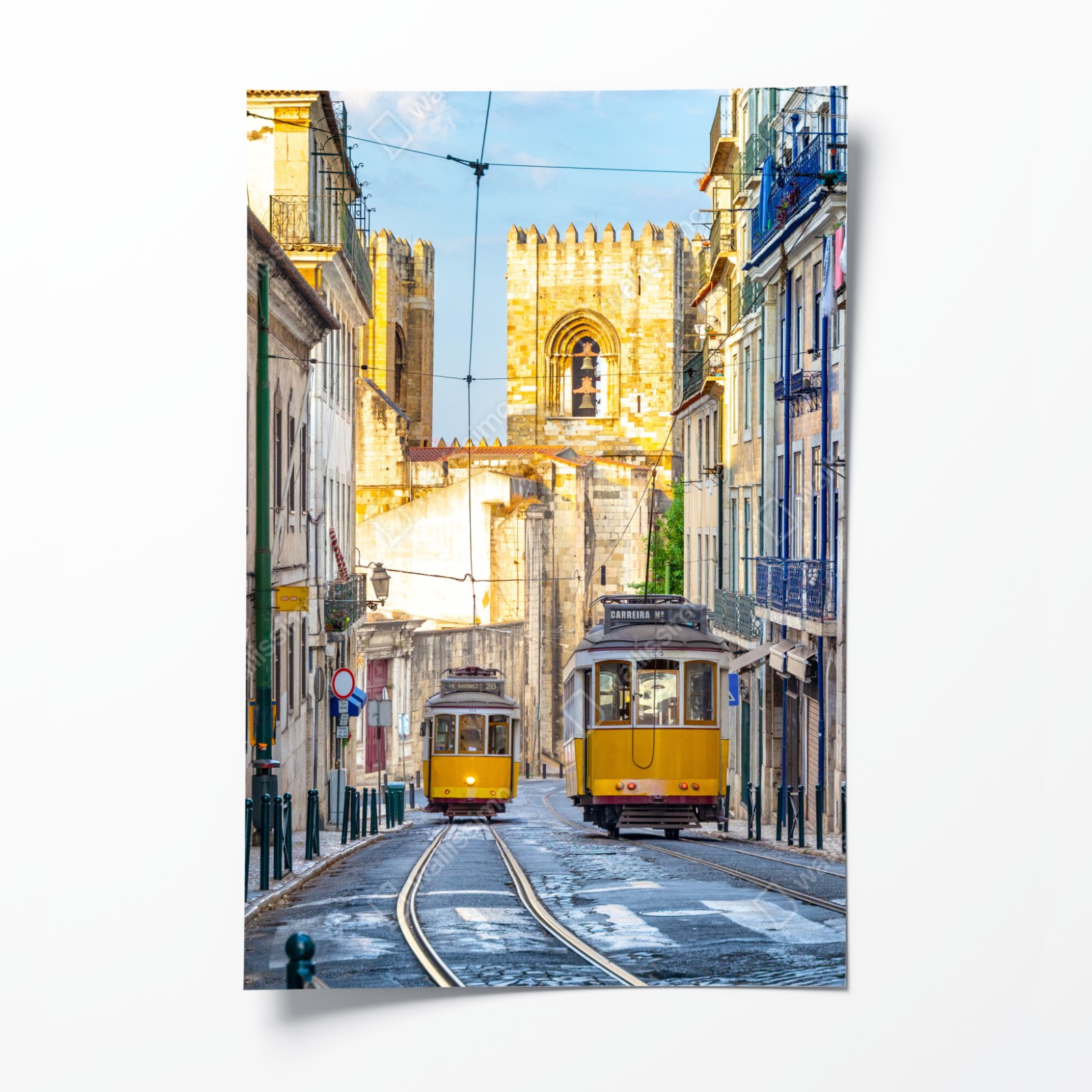 Poster sonnige straßenbahnen in Lissabon – Wallnifity®