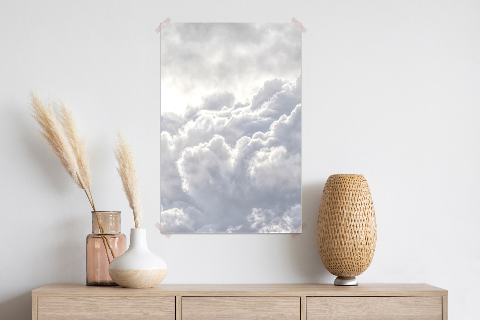 Beruhende wolkenlandschaft in sanften weißen und grauen tönen die jedem raum leichtigkeit und ruhe verleiht.