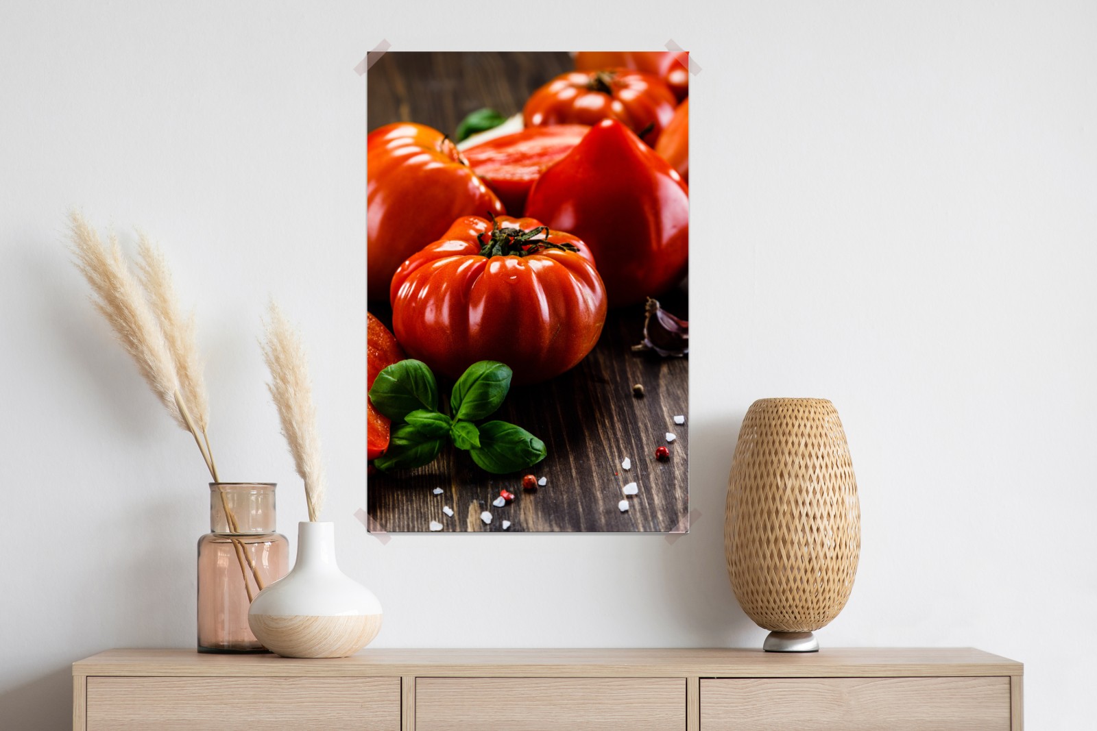 Poster Reife tomaten auf rustikalem holztisch