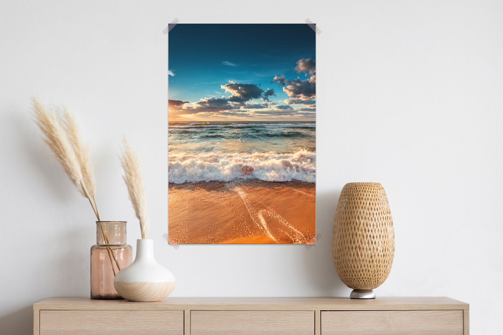 Poster goldener sonnenaufgang über der meeresküste – Wallnifity®