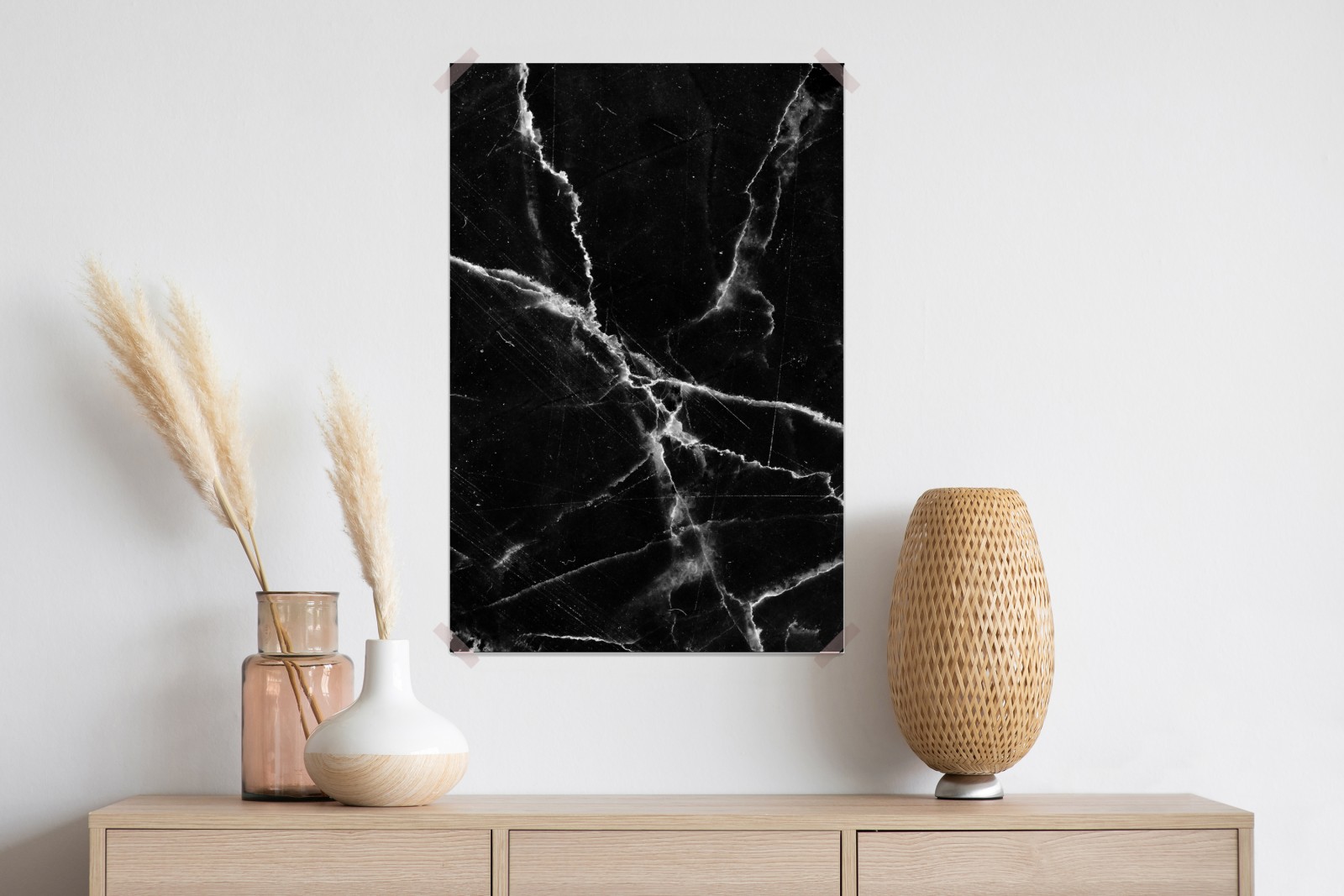 Poster schwarzer marmor mit weißen adern – Wallnifity®