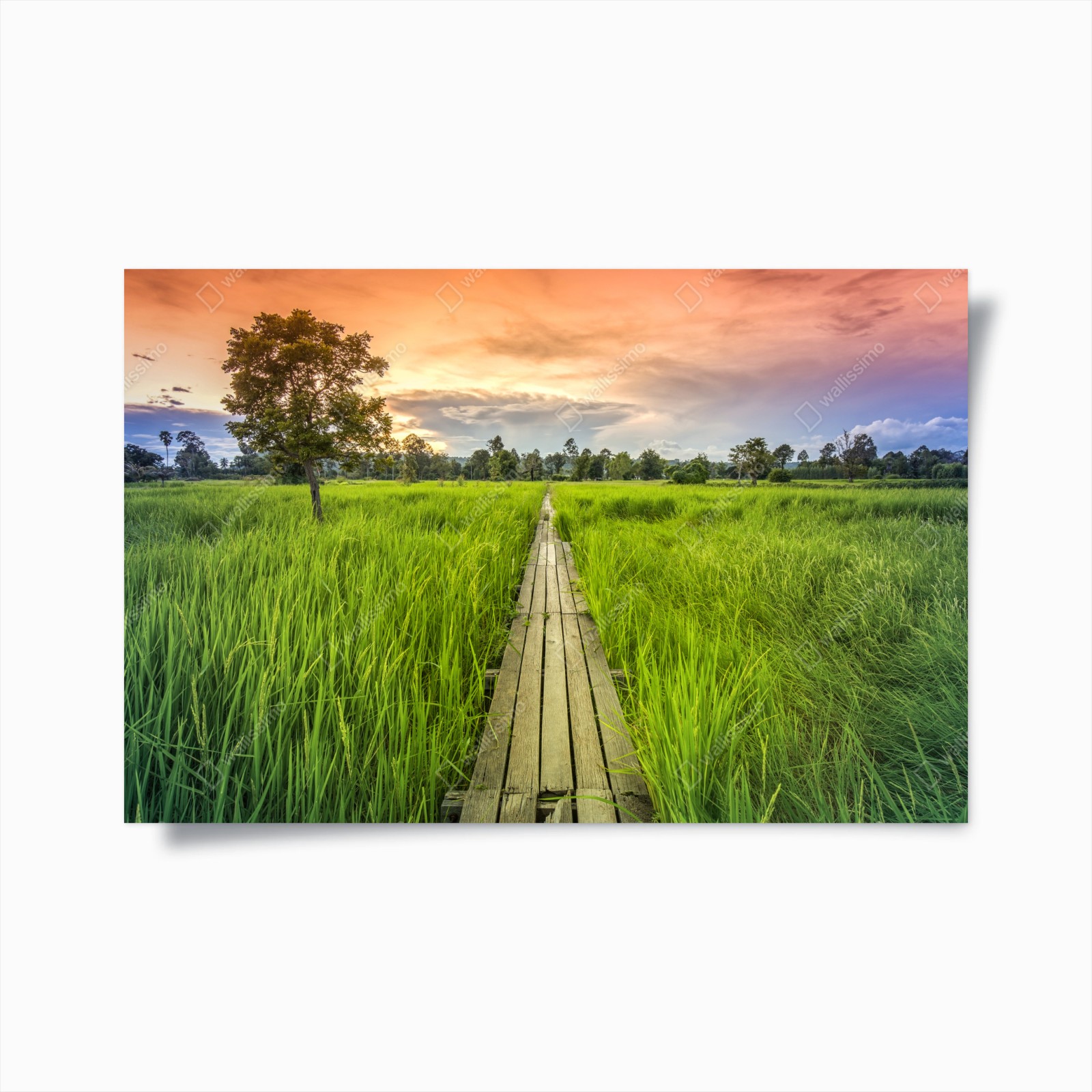 Poster Sonnenuntergang über einer hölzernen brücke in Khonburi