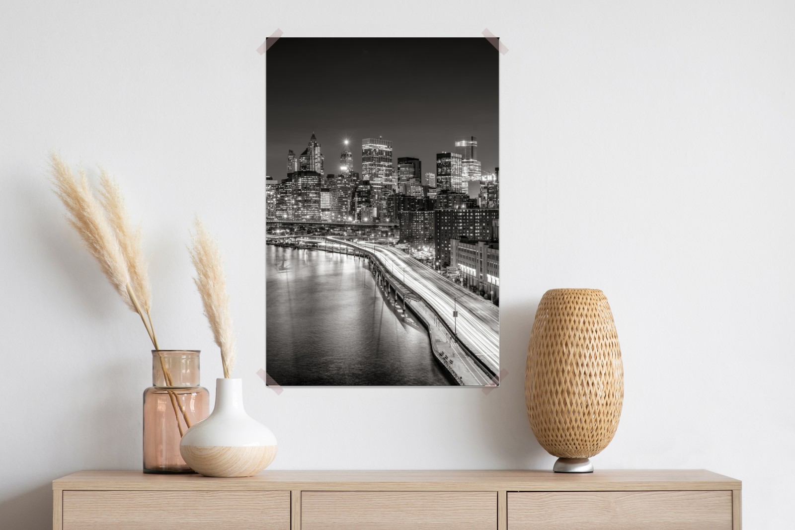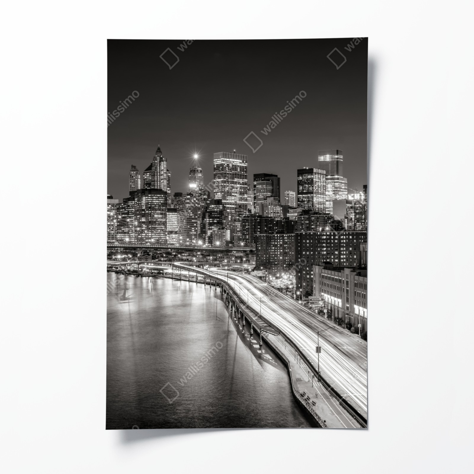 Poster monochrome stadtsilhouette bei nacht – Wallnifity®