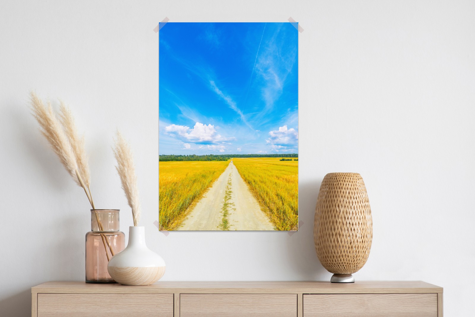 Poster goldene wiese unter weitem blauem himmel – Wallnifity®