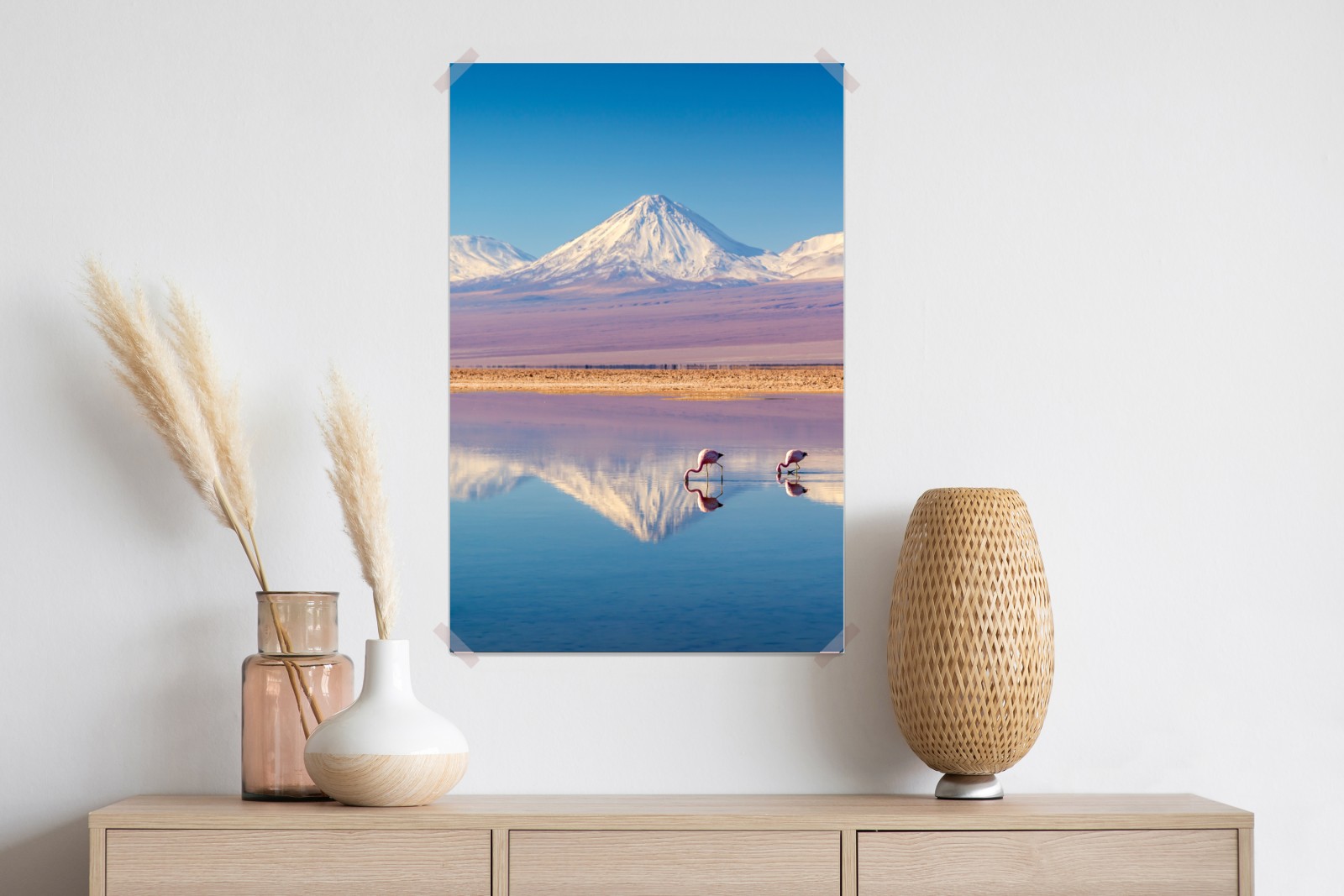 Poster Laguna Chaxa mit flamingos und Licancabur